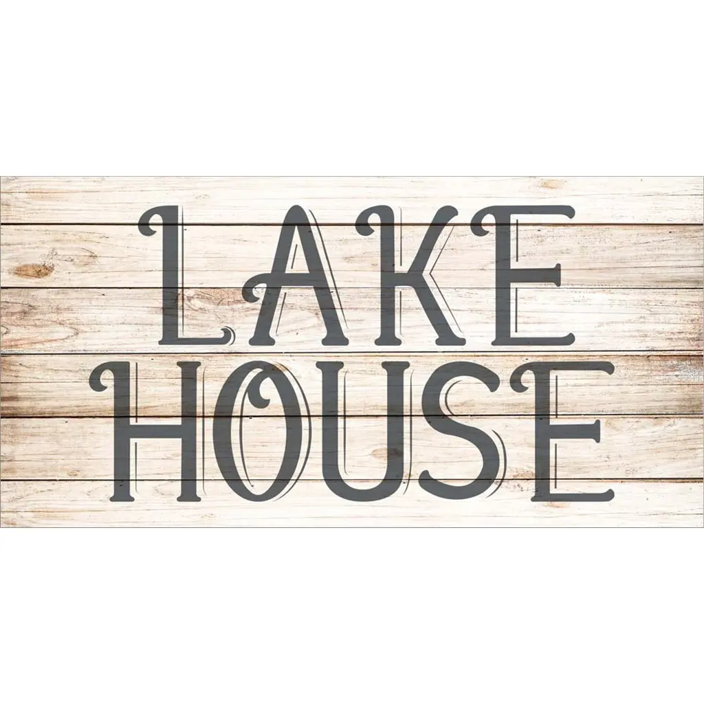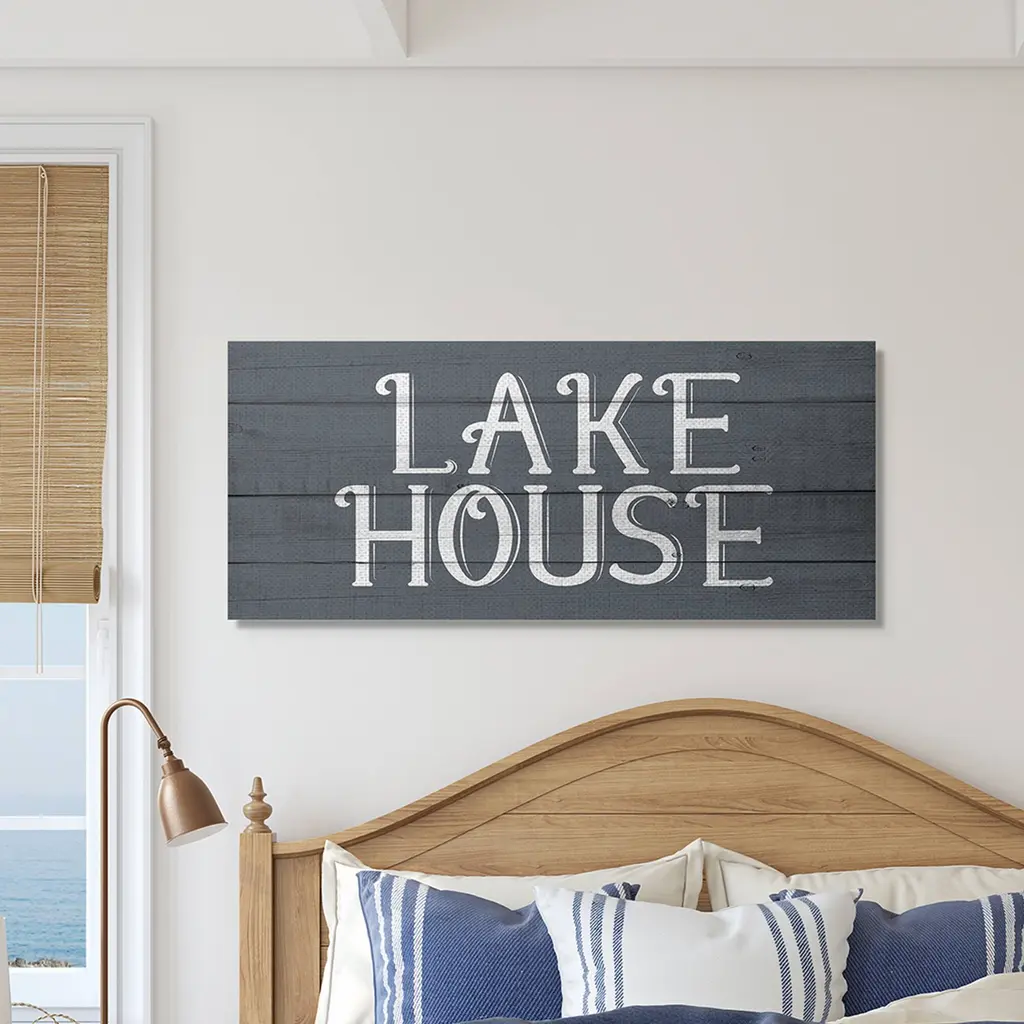 Stupell Lake House Sign Blue White Planked Look Canvas Wall Art - 13 X 30