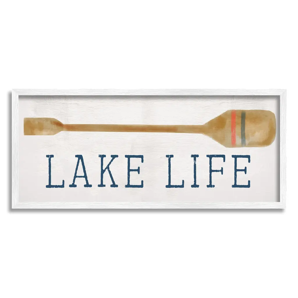 Add dimension to any room with our textured Framed Giclee Artwork. Our framed artwork is securely mounted into a 1.5-inch thick wood grain frame and ready to hang. Frames are available in three alluring styles: black, gray farmhouse and white. In addition, you should check out our oversized options if you want a statement piece. Stupell Wall Art is made in the USA.Features: Dimensions: 24 x 1.5 x 10 FramedFramed Giclee Sizes Include Standard: 24 x 1.5 x 10 Oversized: 30 x 1.5 x 13Wall Art is Ready to Hang with Hardware Free Hanging. No installation required. For Easy Set Up Lean or Layer Artwork on Shelf or Against Wall.Our giclée prints are carefully mounted on a durable MDF backing, and then perfectly finished in a 1.5 inch thick woodgrain frame. Mounted frame colors include black, gray farmhouse and white. Made In USA.Artwork Relates To: Oars, Paddle, Lake, Boat, Lake House, Lake LifeDesign by Lil' Rue