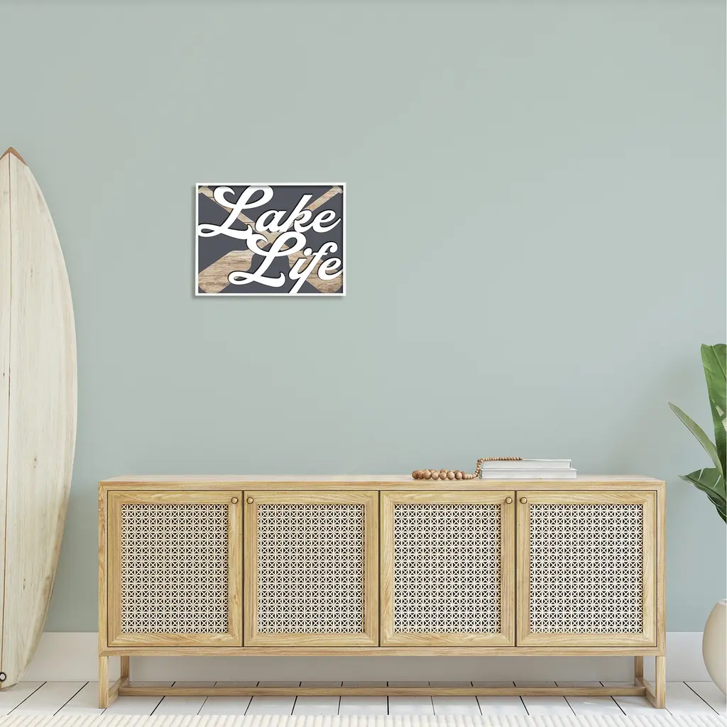 Our Framed Giclee Wall Art adds a touch of class to any space in your home or office. Frames are available in three alluring styles: black, gray farmhouse and white. Our textured artwork will add more depth and dimension to any space. Each piece is mounted with a 1.5 inch thick wood grain frame that is ready to hang! Looking for a statement piece? We have oversized artwork available. Room Type: Living Room, Den, Hallway, Office, Entryway, Study, Dining Room or Bedroom, Guest Room, Studio, Dorm or BoudoirFeatures: Dimensions: 14 x 1.5 x 11 FramedFramed Giclee Sizes Include Standard: 14 x 1.5 x 11 Large: 20 x 1.5 x 16 Oversized: 30 x 1.5 x 24Wall Art is Ready to Hang - No Installation or Hardware Needed. For Easy Set Up Lean or Layer Artwork on Shelf or Against Wall.Our giclée prints are carefully mounted on a durable MDF backing, and then perfectly finished in a 1.5 inch thick woodgrain frame. Mounted frame colors include black, gray farmhouse and white. Made In USA.Artwork Relates To: Phrase, Lake, Coastal, Nautical, Oars, Lake LifeDesign by Lil' Rue