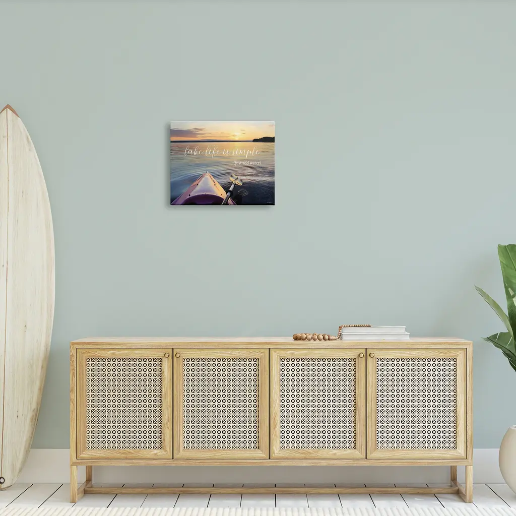Stupell Lake Life Is Simple Phrase Kayak Boat Sunrise Canvas Wall Art - Blue - 20 X 16