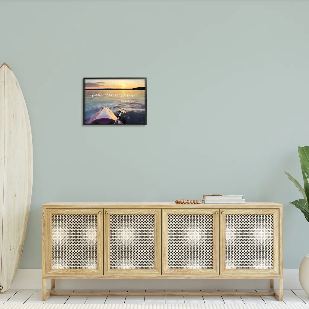 Stupell Lake Life Is Simple Phrase Kayak Boat Sunrise Framed Wall Art - Blue - 20 X 16 - Black