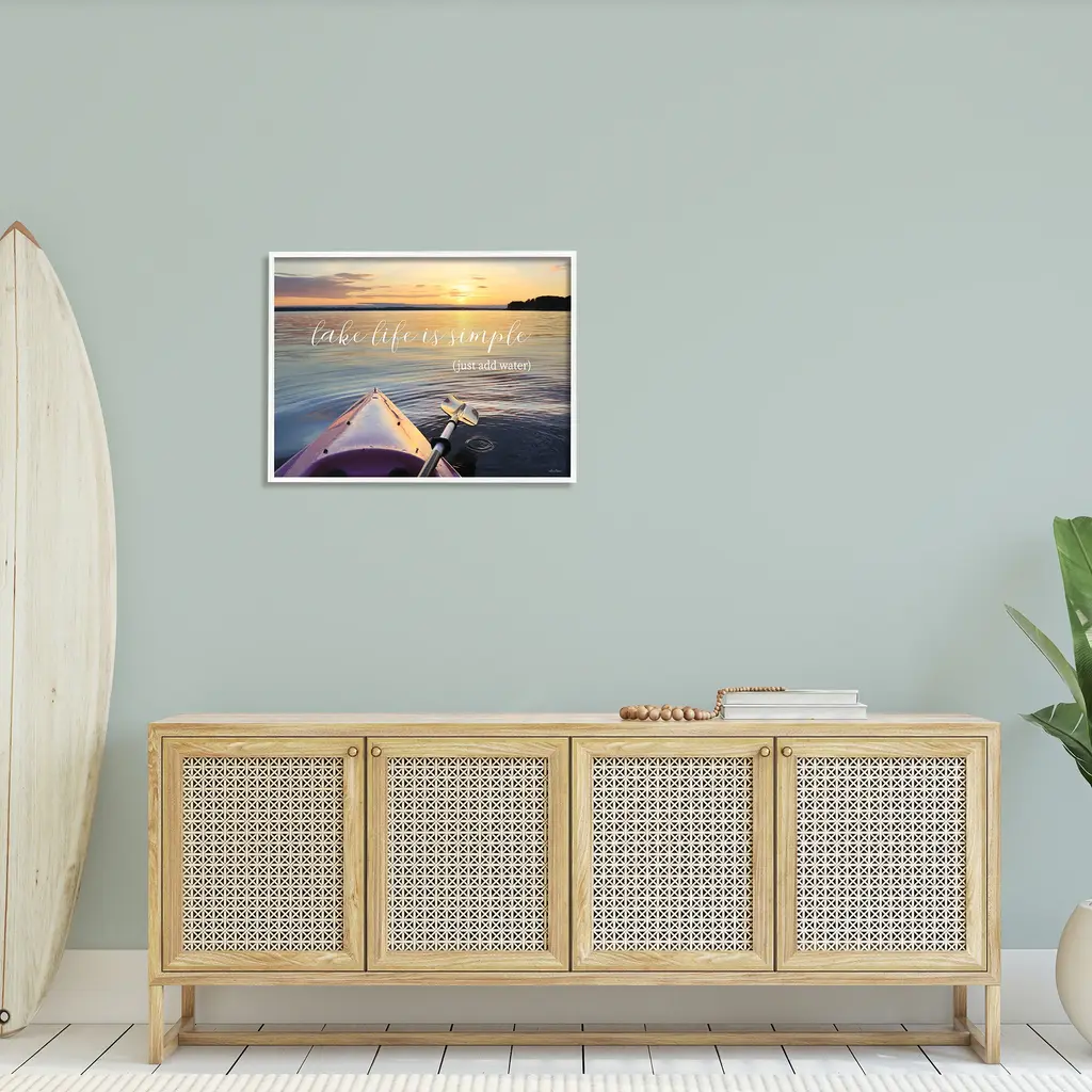 Stupell Lake Life Is Simple Phrase Kayak Boat Sunrise Framed Wall Art - Blue - 30 X 24 - White