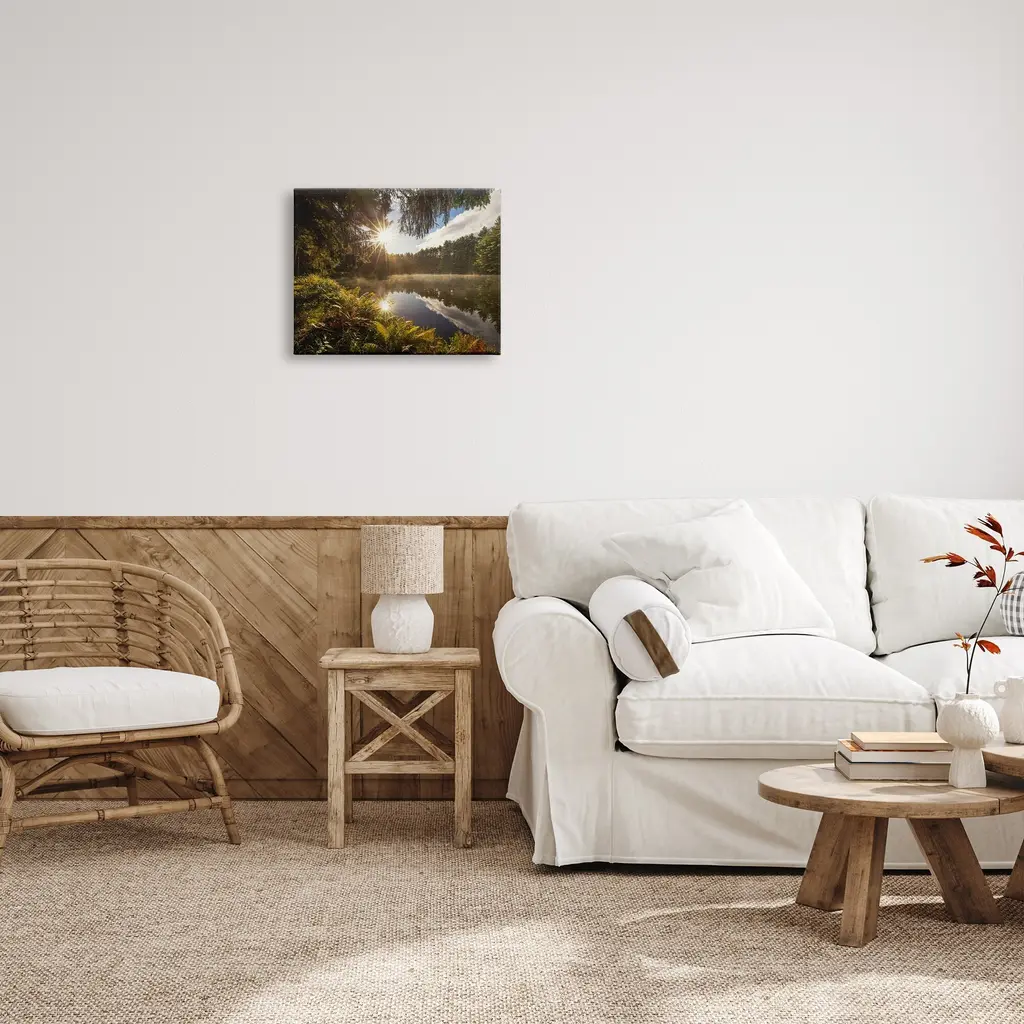 We create our stretched canvas to the highest standards. Using only the highest quality inks and canvas on Mimaki printers, we hand-cut and stretch each piece over a 1.5-inch thick wooden frame for hanging. As a result, the art comes ready to hang on the sturdy ledge with no installation required. Stupell Wall Art is made in the USA.Features: Dimensions: 20 x 1.5 x 16 InchesStretched Canvas Sizes Include Standard: 20 x 1.5 x 16 Large: 30 x 1.5 x 20 X-Large: 40 x 1.5 x 30 Oversized: 48 x 1.5 x 36Wall Art is Ready to Hang with Hardware Free Hanging. No installation required. For Easy Set Up Lean or Layer Artwork on Shelf or Against Wall.Our stretched canvas is created with the highest standards. We use only the highest quality inks and canvas on our in house Mimaki printers, and then hand cut and stretch each piece over a 1.5 inch thick wooden frame for hanging. Made In USA.Artwork Relates To: Sunlight, Plant, Vegetation, Nature, Scenery, Tree, Pond, Water, Woodland, Jungle, Sky, Landscape, Lake, PhotographyDesign by Patrick Zephyr