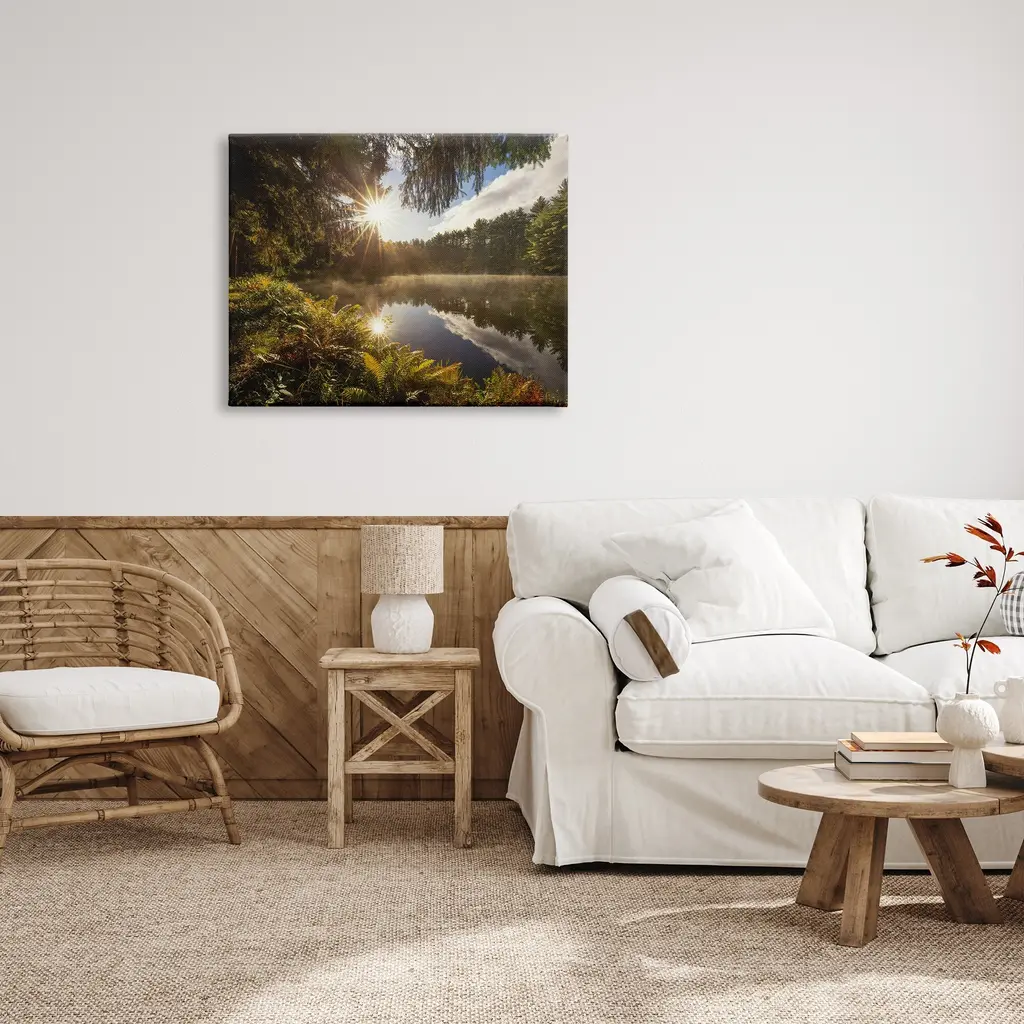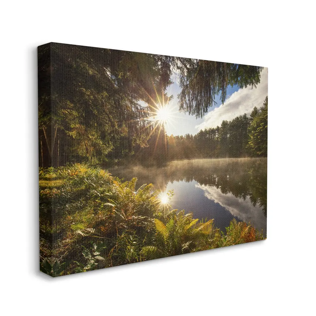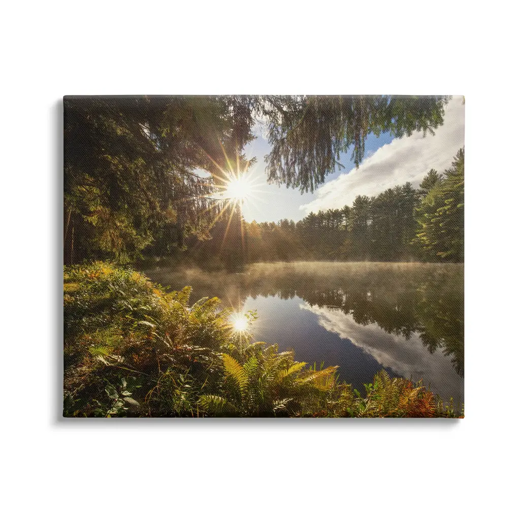 We create our stretched canvas to the highest standards. Using only the highest quality inks and canvas on Mimaki printers, we hand-cut and stretch each piece over a 1.5-inch thick wooden frame for hanging. As a result, the art comes ready to hang on the sturdy ledge with no installation required. Stupell Wall Art is made in the USA.Features: Dimensions: 20 x 1.5 x 16 InchesStretched Canvas Sizes Include Standard: 20 x 1.5 x 16 Large: 30 x 1.5 x 20 X-Large: 40 x 1.5 x 30 Oversized: 48 x 1.5 x 36Wall Art is Ready to Hang with Hardware Free Hanging. No installation required. For Easy Set Up Lean or Layer Artwork on Shelf or Against Wall.Our stretched canvas is created with the highest standards. We use only the highest quality inks and canvas on our in house Mimaki printers, and then hand cut and stretch each piece over a 1.5 inch thick wooden frame for hanging. Made In USA.Artwork Relates To: Sunlight, Plant, Vegetation, Nature, Scenery, Tree, Pond, Water, Woodland, Jungle, Sky, Landscape, Lake, PhotographyDesign by Patrick Zephyr