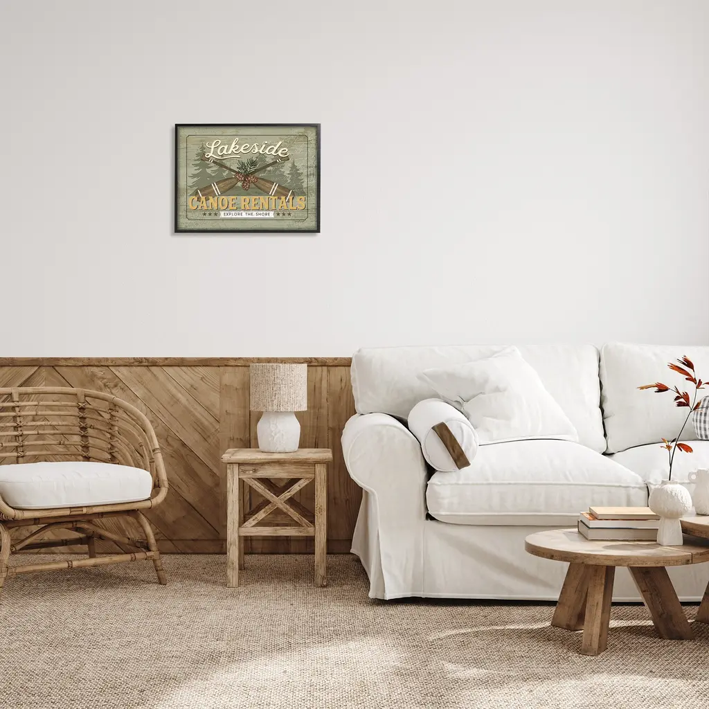 Stupell Lakeside Canoe Rentals Vintage Rustic Framed Giclee Art By Jennifer Pugh - 20 X 16 - Black