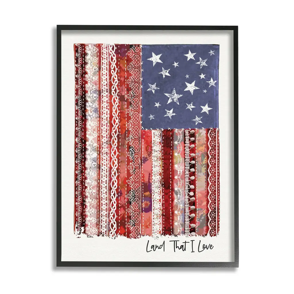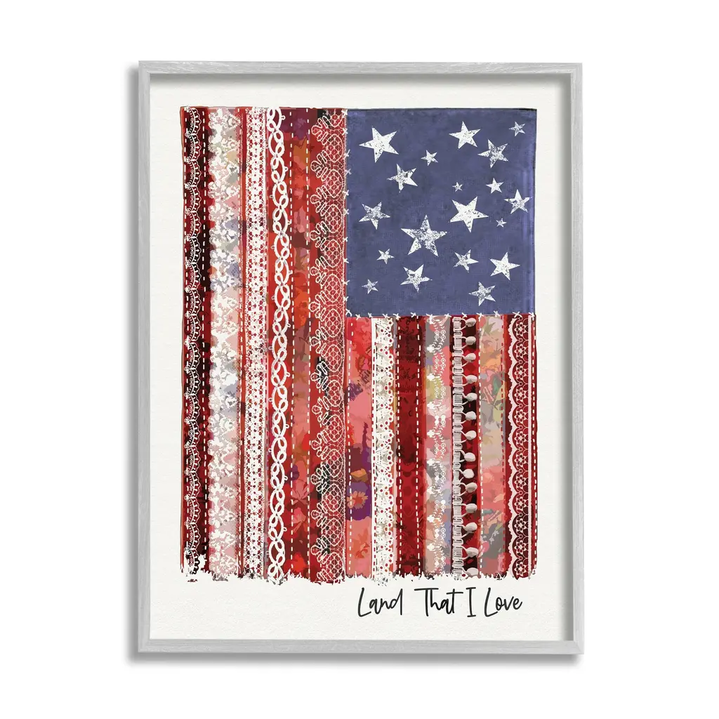 Stupell Land That I Love Phrase Macramé American Flag Framed Wall Art - Red - 16 X 20 - Grey