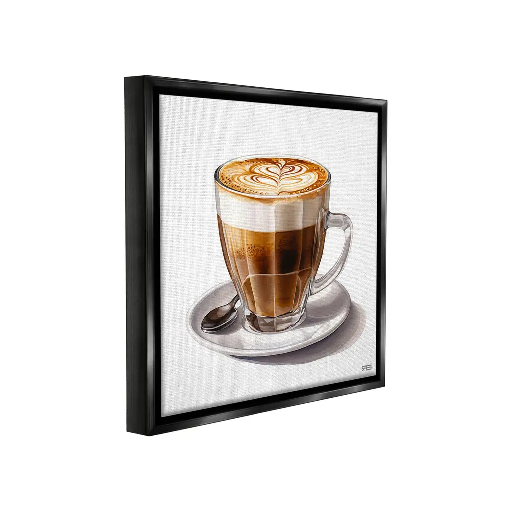 Elevate your home or office to the next level with Stupell Framed Floating Canvas Wall Art. Our premium hand-stretched canvas is mounted securely into a sturdy lightweight frame. The museum-style gap between the wrapped canvas and the box frame gives the illusion of floating artwork. Stupell Wall Art is made in the USA.Features: Dimensions: 18 x 1.7 x 18 Frame, 17 x 1.5 x 17 Canvas ArtFloating Frame Canvas Products are available in sizes 18"x18" and 25"x25". All Floating Frame Canvas Products have a 1.7" Depth.Wall Art is Ready to Hang with Hardware Free Hanging. No Installation required. For Easy Set Up Lean or Layer Artwork on Shelf or Against Wall. Artwork is Permently Fixed into the Frame.Our elevated 1.7" Thick Floating Frame is the perfect complement to our canvas style Wall Art. We use only the highest quality inks in house with industry leading printing solutions. Canvas is hand stretched over a durable wood foundation and then mounted securly into a Modern Box Frame. Made in the USA.Artwork Relates To: Cup, Coffee, Latte, Glass, Straw, Cafe, Espresso, Beverage, Brunch, KitchenDesign by RB