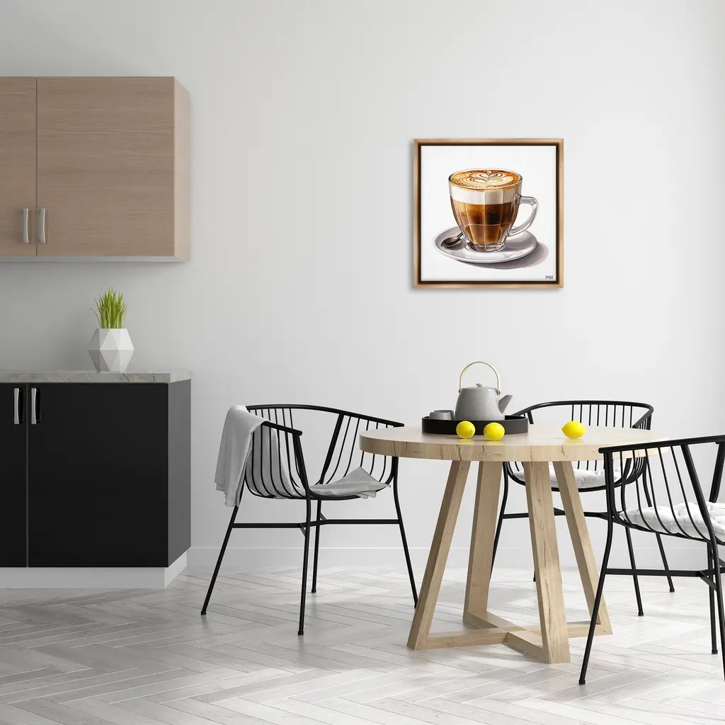 Elevate your home or office to the next level with Stupell Framed Floating Canvas Wall Art. Our premium hand-stretched canvas is mounted securely into a sturdy lightweight frame. The museum-style gap between the wrapped canvas and the box frame gives the illusion of floating artwork. Stupell Wall Art is made in the USA.Features: Dimensions: 18 x 1.7 x 18 Frame, 17 x 1.5 x 17 Canvas ArtFloating Frame Canvas Products are available in sizes 18"x18" and 25"x25". All Floating Frame Canvas Products have a 1.7" Depth.Wall Art is Ready to Hang with Hardware Free Hanging. No Installation required. For Easy Set Up Lean or Layer Artwork on Shelf or Against Wall. Artwork is Permently Fixed into the Frame.Our elevated 1.7" Thick Floating Frame is the perfect complement to our canvas style Wall Art. We use only the highest quality inks in house with industry leading printing solutions. Canvas is hand stretched over a durable wood foundation and then mounted securly into a Modern Box Frame. Made in the USA.Artwork Relates To: Cup, Coffee, Latte, Glass, Straw, Cafe, Espresso, Beverage, Brunch, KitchenDesign by RB