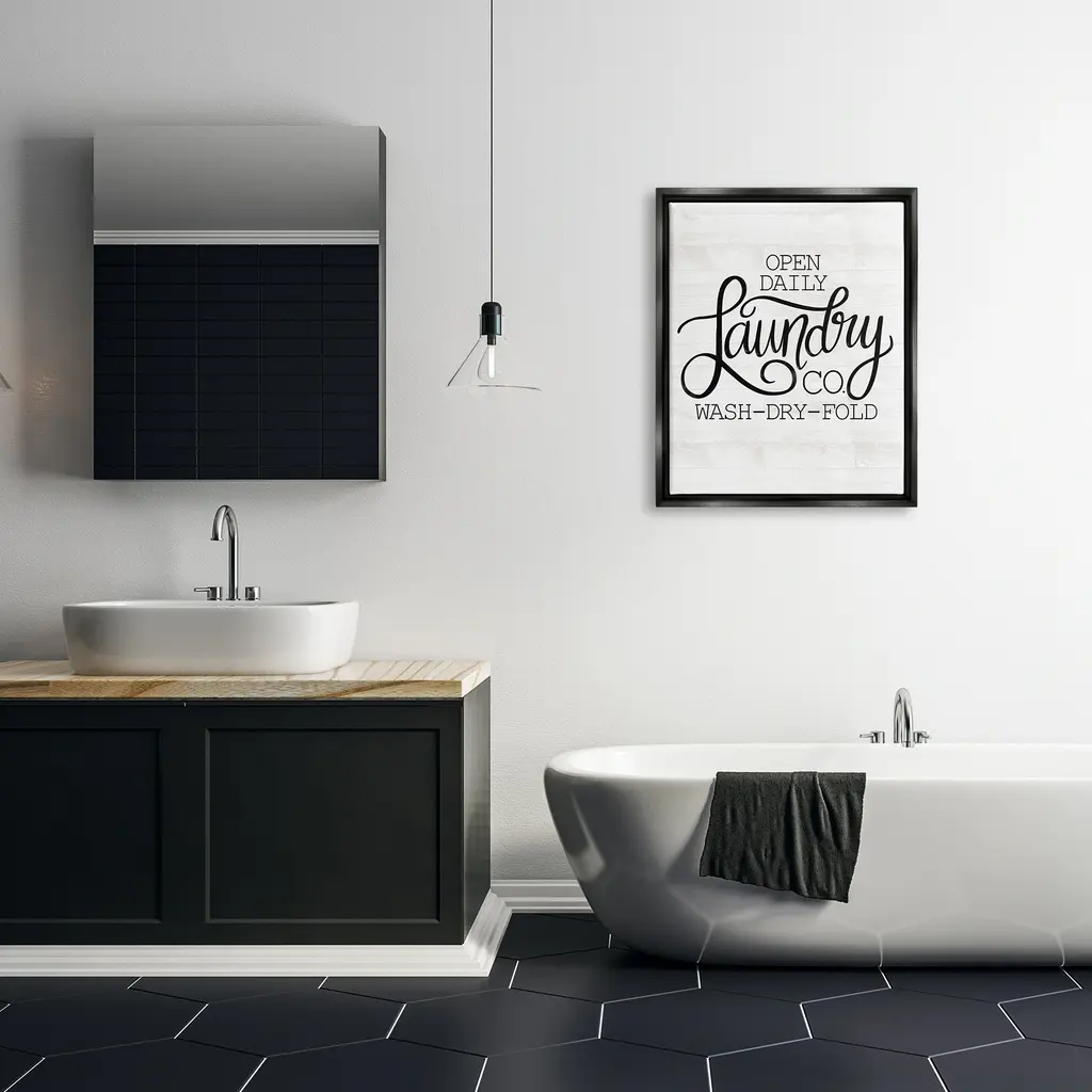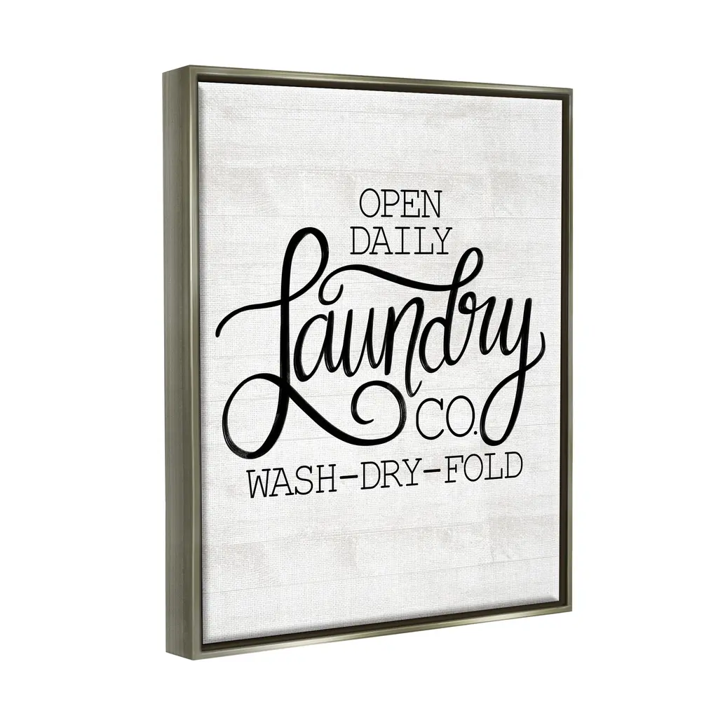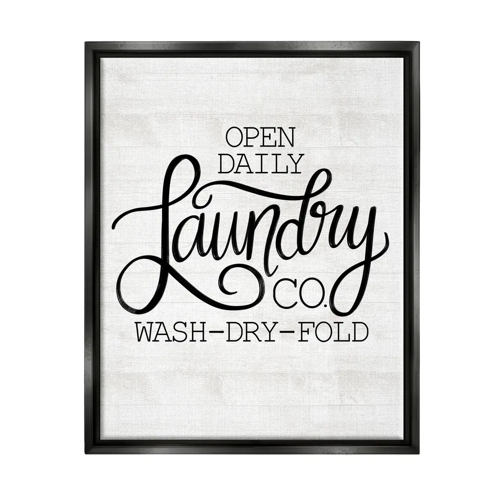 Elevate your home or office to the next level with Stupell Framed Floating Canvas Wall Art. Our premium hand-stretched canvas is mounted securely into a sturdy lightweight frame. The museum-style gap between the wrapped canvas and the box frame gives the illusion of floating artwork. Stupell Wall Art is made in the USA.Features: Dimensions: 17 x 1.7 x 21 Frame, 16 x 1.5 x 20 Canvas ArtFloating Frame Sizes Include Standard: 17 x 1.7 x 21 Oversized: 25 x 1.7 x 31Wall Art is Ready to Hang - No Installation or Hardware Needed. For Easy Set Up Lean or Layer Artwork on Shelf or Against Wall.Our elevated 1.7" Thick Floating Frame is the perfect complement to our canvas style Wall Art. We use only the highest quality inks in house with industry leading printing solutions. Canvas is hand stretched over a durable wood foundation and then mounted securly into a Modern Box Frame. Made in the USA.Artwork Relates To: Rustic, Farmhouse, Bathroom, Phrase, Sign, Open Daily Laundry Co, Wash Dry FoldDesign by Taylor Shannon Designs