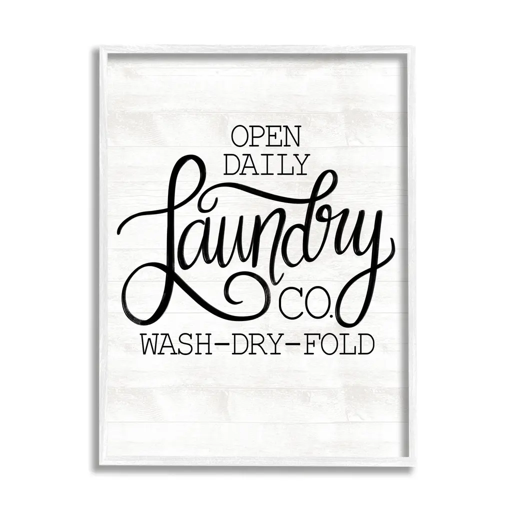 Add dimension to any room with our textured Framed Giclee Artwork. Our framed artwork is securely mounted into a 1.5-inch thick wood grain frame and ready to hang. Frames are available in three alluring styles: black, gray farmhouse and white. In addition, you should check out our oversized options if you want a statement piece. Stupell Wall Art is made in the USA.Features: Dimensions: 11 x 1.5 x 14 FramedFramed Giclee Sizes Include Standard: 11 x 1.5 x 14 Large: 16 x 1.5 x 20 Oversized: 24 x 1.5 x 30Wall Art is Ready to Hang - No Installation or Hardware Needed. For Easy Set Up Lean or Layer Artwork on Shelf or Against Wall.Our giclée prints are carefully mounted on a durable MDF backing, and then perfectly finished in a 1.5 inch thick woodgrain frame. Mounted frame colors include black, gray farmhouse and white. Made In USA.Artwork Relates To: Rustic, Farmhouse, Bathroom, Phrase, Sign, Open Daily Laundry Co, Wash Dry FoldDesign by Taylor Shannon Designs