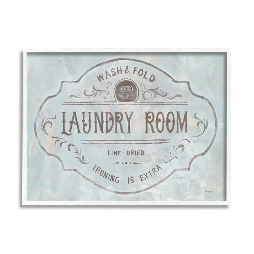 Stupell Laundry Room Blue White Text Typography Sign Canvas Wall Art - 17 X 40