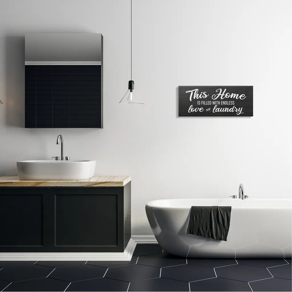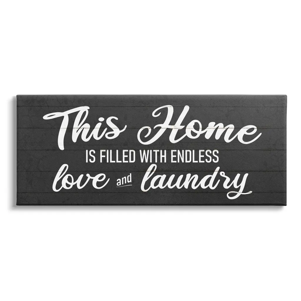 Proudly made in the USA, Our stretched canvas is created with the highest standards. We use only the highest quality inks and canvas on our in house Mimaki printers, and then hand cut and stretch each piece over a 1.5 inch thick wooden frame for hanging. The art comes ready to hang with no installation required.Features: Wall Art is Ready to Hang - No Installation or Hardware Needed. For Easy Set Up Lean or Layer Artwork on Shelf or Against Wall.Our stretched canvas is created with the highest standards. We use only the highest quality inks and canvas on our in house Mimaki printers, and then hand cut and stretch each piece over a 1.5 inch thick wooden frame for hanging. Made In USA.Artwork Relates To: This Home IS FILLED WITH ENDLESS love and laundry, Sign, TypographyDesign by Kim Allen