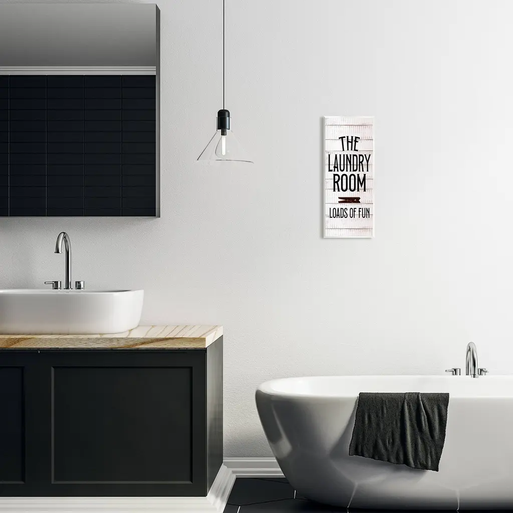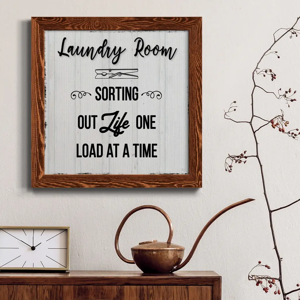 Our wall plaques start as high-quality lithograph prints mounted on durable 0.5-inch thick MDF wood. Each piece is hand finished and comes with a fresh layer of white foil on the sides to give it a crisp, clean look. Plaques arrive ready to hang without installation and come with removable plastic corners to keep them from damage in transit. Wall Art is made in the USA.Features: Dimensions: 7 x 0.5 x 17 InchesWall Art is Ready to Hang with Hardware Free Hanging. No installation required. For Easy Set Up Lean or Layer Artwork on Shelf or Against Wall.All of our wall plaques start off as high quality lithograph prints that are then mounted on durable 0.5 inch thick MDF wood. Each piece is hand finished and comes with a fresh layer of foil on the sides to give it a crisp clean look. Made In USA.Artwork Relates To: Rustic, Laundry, Country, Farmhouse, Vintage, The Laundry Room, Loads of FunDesign by Kim Allen