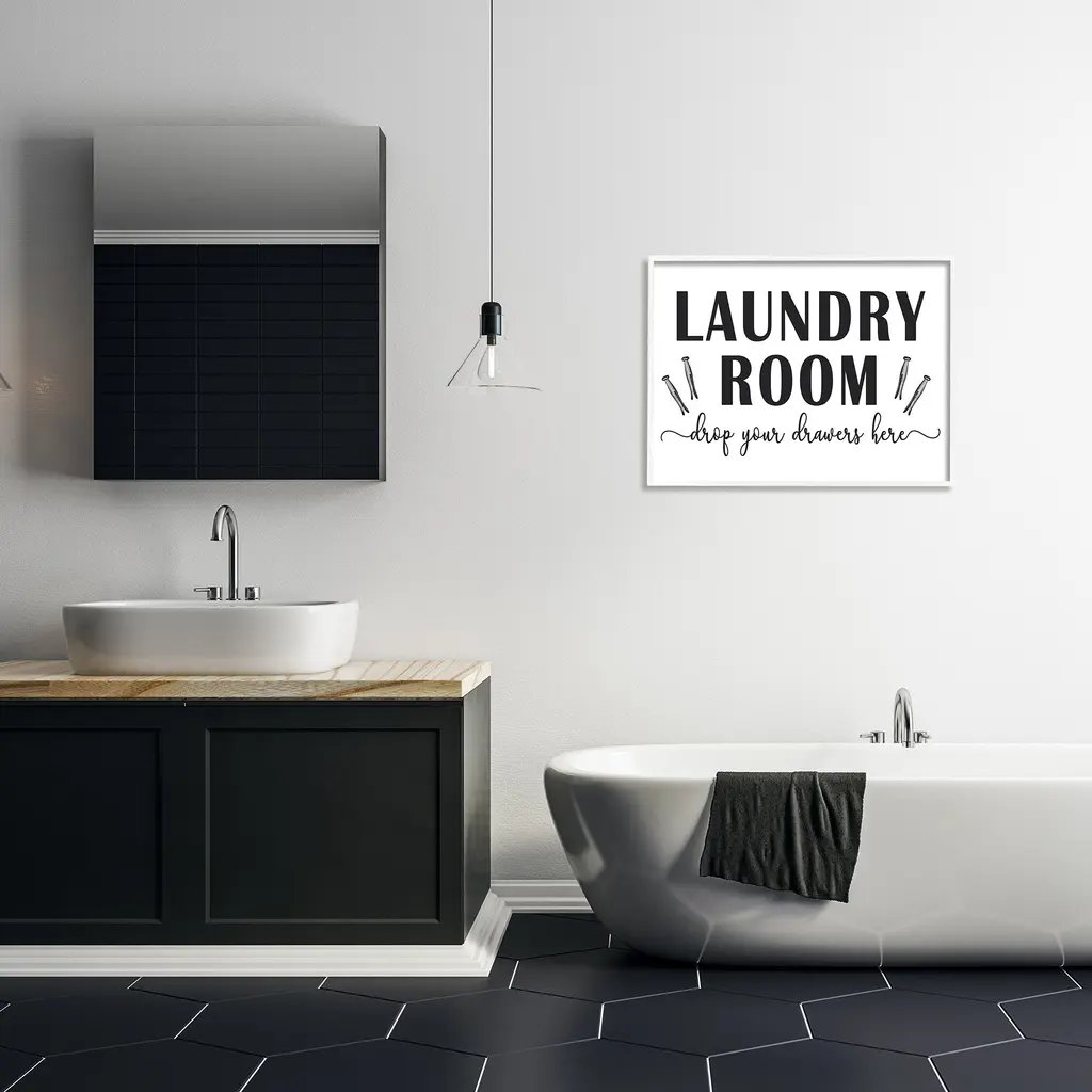 Stupell Laundry Room Sign Drop Drawers Here Funny Phrase Framed Wall Art - White - 24 X 30 - White