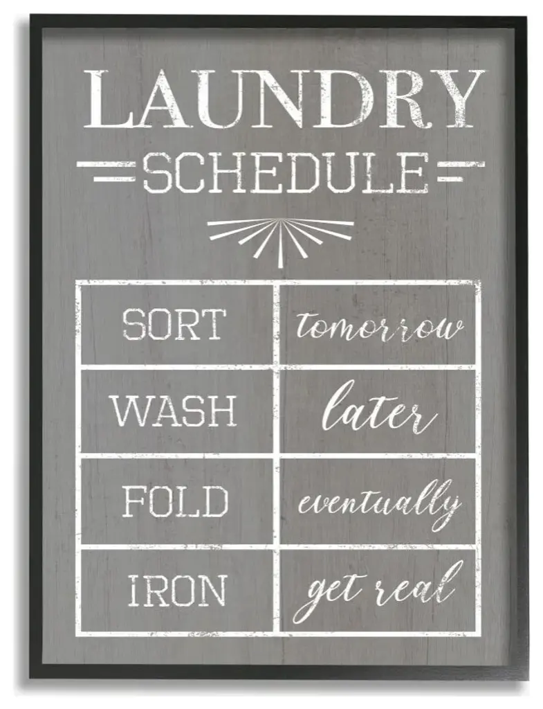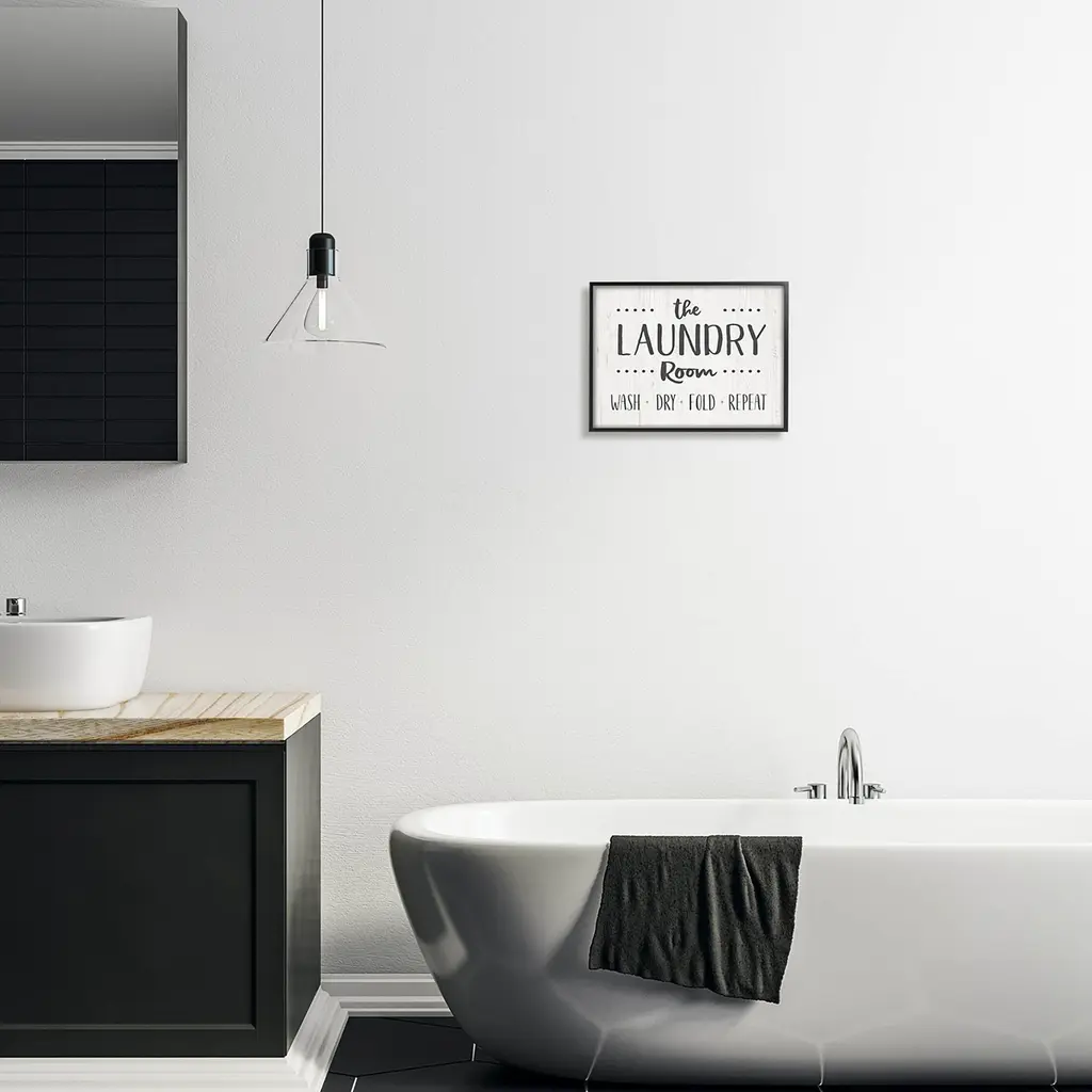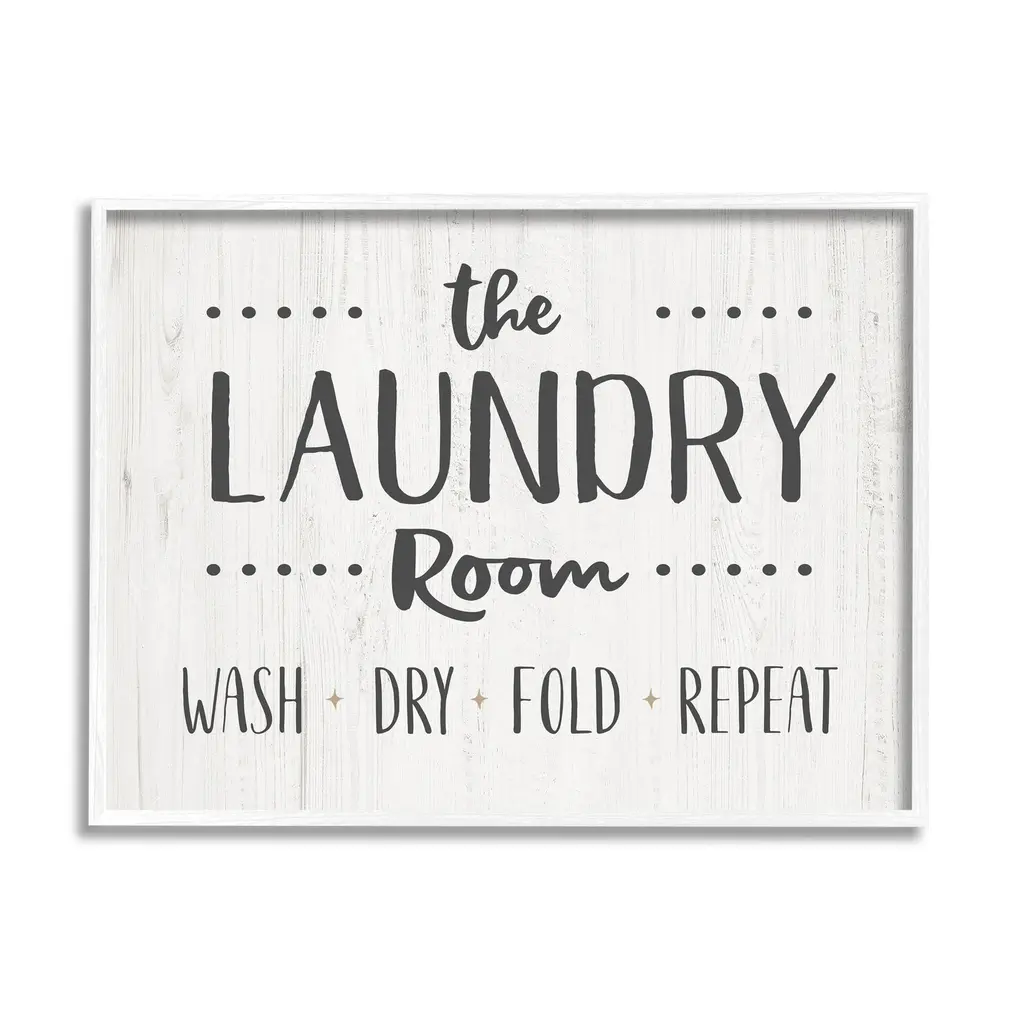 Our Framed Giclee Wall Art adds a touch of class to any space in your home or office. Frames are available in three alluring styles: black, gray farmhouse and white. Our textured artwork will add more depth and dimension to any space. Each piece is mounted with a 1.5 inch thick wood grain frame that is ready to hang! Looking for a statement piece? We have oversized artwork available.Features: Dimensions: 14 x 1.5 x 11 FramedFramed Giclee Sizes Include Standard: 14 x 1.5 x 11 Large: 20 x 1.5 x 16 Oversized: 30 x 1.5 x 24Wall Art is Ready to Hang - No Installation or Hardware Needed. For Easy Set Up Lean or Layer Artwork on Shelf or Against Wall.Our giclée prints are carefully mounted on a durable MDF backing, and then perfectly finished in a 1.5 inch thick woodgrain frame. Mounted frame colors include black, gray farmhouse and white. Made In USA.Artwork Relates To: Laundry, Laundry RoomDesign by CADFirst perfectly in any Laundry Room or Wash Room.Text Includes: The Laundry Room. Wash Dry Fold Repeat