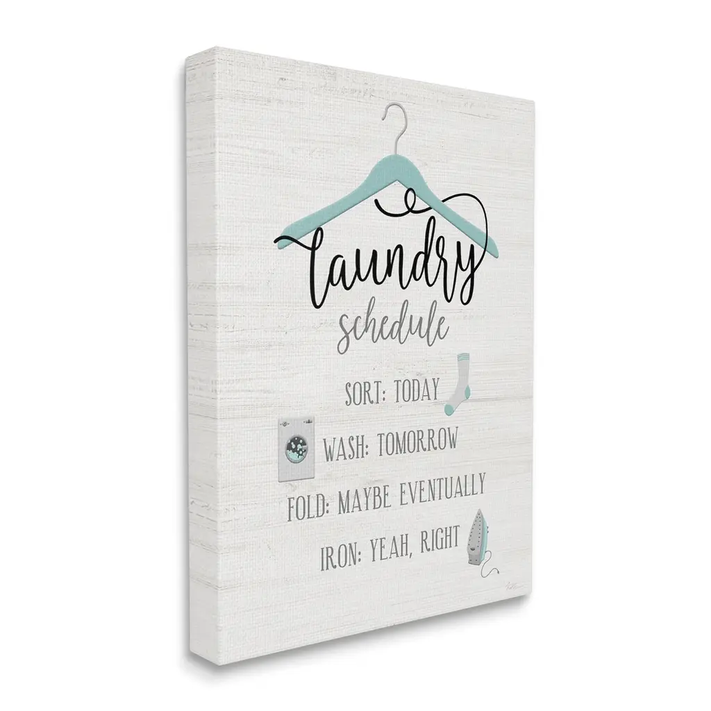 Stupell Laundry Schedule Blue Clothes Hanger Sort Wash Fold Canvas Wall Art - Black - 24 X 30