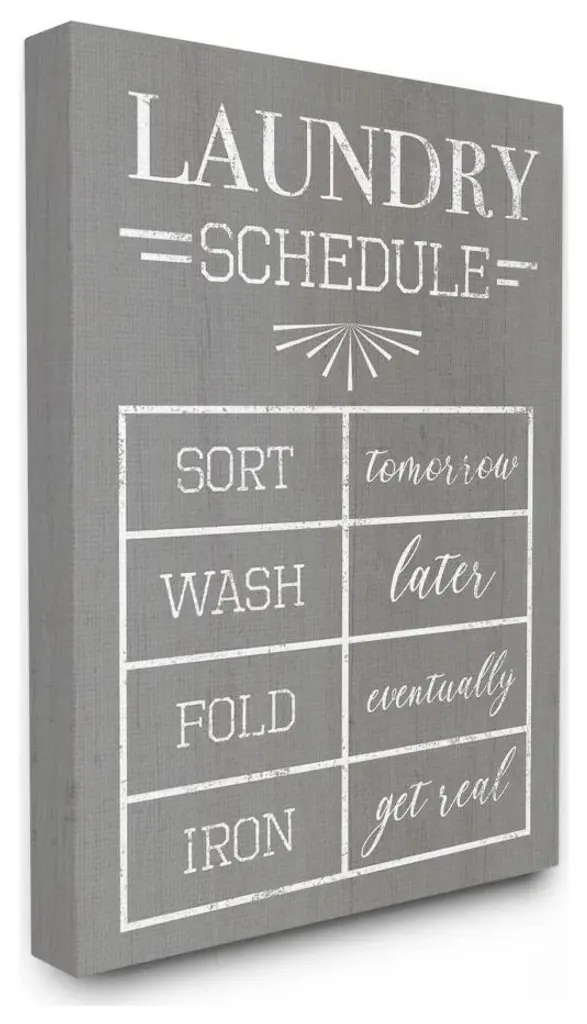 It is time to set up your room with of our fresh new 'Framed Giclee Textured Wall Art' pieces. You may have seen our Wooden or Canvas products, but our framed products are now available in three alluring styles: black, gray farmhouse and white. Our textured artwork will add more depth and dimension to any space. Each piece is mounted with a 1.5 inch thick wood grain frame that is ready to hang! Looking for a statement piece? We have oversized artwork available.Features: Wall Art is Ready to Hang - No Installation or Hardware Needed. For Easy Set Up Lean or Layer Artwork on Shelf or Against Wall.Our giclee prints are carefully mounted on a durable MDF backing, and then perfectly finished in a 1.5 inch thick woodgrain frame. Frame colors include black, gray farmhouse and white. Made In USA.Artwork Relates To: Laundry Schedule; TypographyDesign by Lettered and Lined