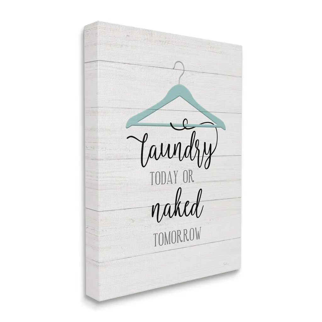 Stupell Laundry Today Naked Tomorrow Laundry Traditional Blue Hanger Canvas Wall Art - 36 X 48