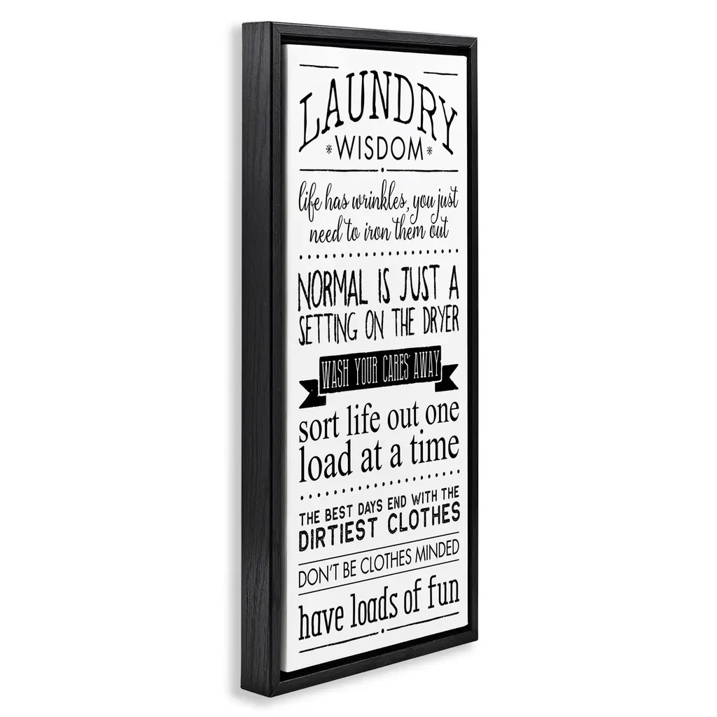 Stupell Laundry Wisdom Life Phrases Framed Floater Canvas Wall Art Design By Stephanie Workman Marrott - 14 X 31 - Black