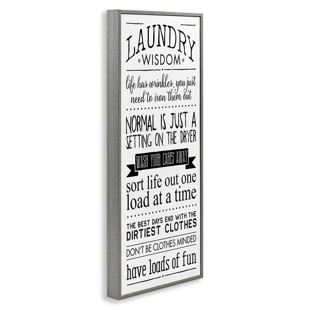 Stupell Laundry Wisdom Life Phrases Framed Giclee Art Design By Stephanie Workman Marrott - 13 X 30 - Grey