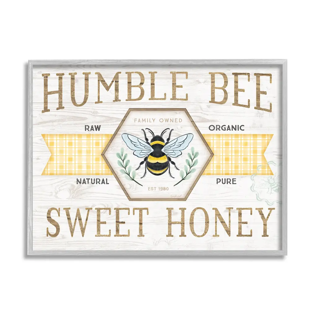 Our wall plaques start as high-quality lithograph prints mounted on durable 0.5-inch thick MDF wood. Each piece is hand finished and comes with a fresh layer of white foil on the sides to give it a crisp, clean look. Plaques arrive ready to hang without installation and come with removable plastic corners to keep them from damage in transit. Stupell Wall Art is made in the USA.Features: Dimensions: 14 x 0.5 x 11 InchesWall Art is Ready to Hang with Hardware Free Hanging. No installation required. For Easy Set Up Lean or Layer Artwork on Shelf or Against Wall.All of our wall plaques start off as high quality lithograph prints that are then mounted on durable 0.5 inch thick MDF wood. Each piece is hand finished and comes with a fresh layer of foil on the sides to give it a crisp clean look. Made In USA.Artwork Relates To: Country, Rustic, Sign, Farmhouse, Kitchen, Honey, FlowerDesign by Creatif Belle