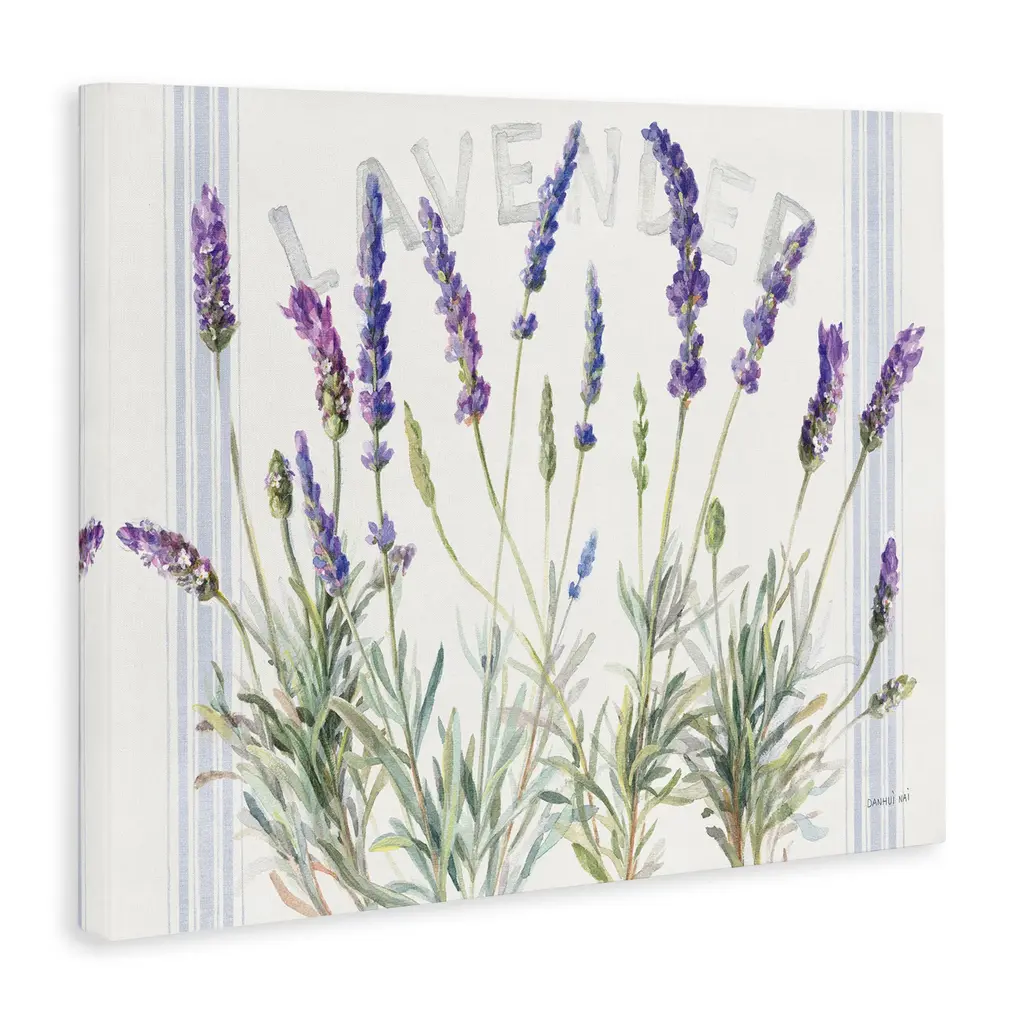 Stupell Lavender Floral Cluster Farmhouse Bistro Stripes Canvas Wall Art - Multi-Color - 16 X 20