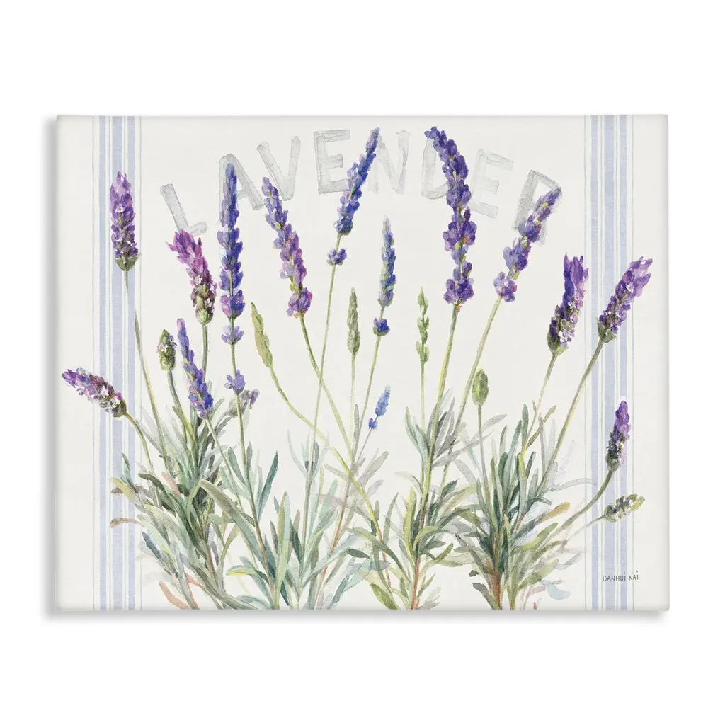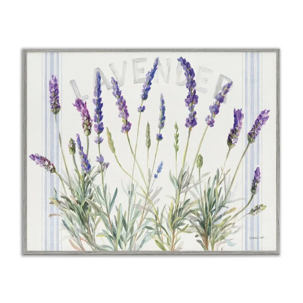 Stupell Lavender Floral Cluster Farmhouse Bistro Stripes Framed Wall Art - Multi-Color - 24 X 30 - White