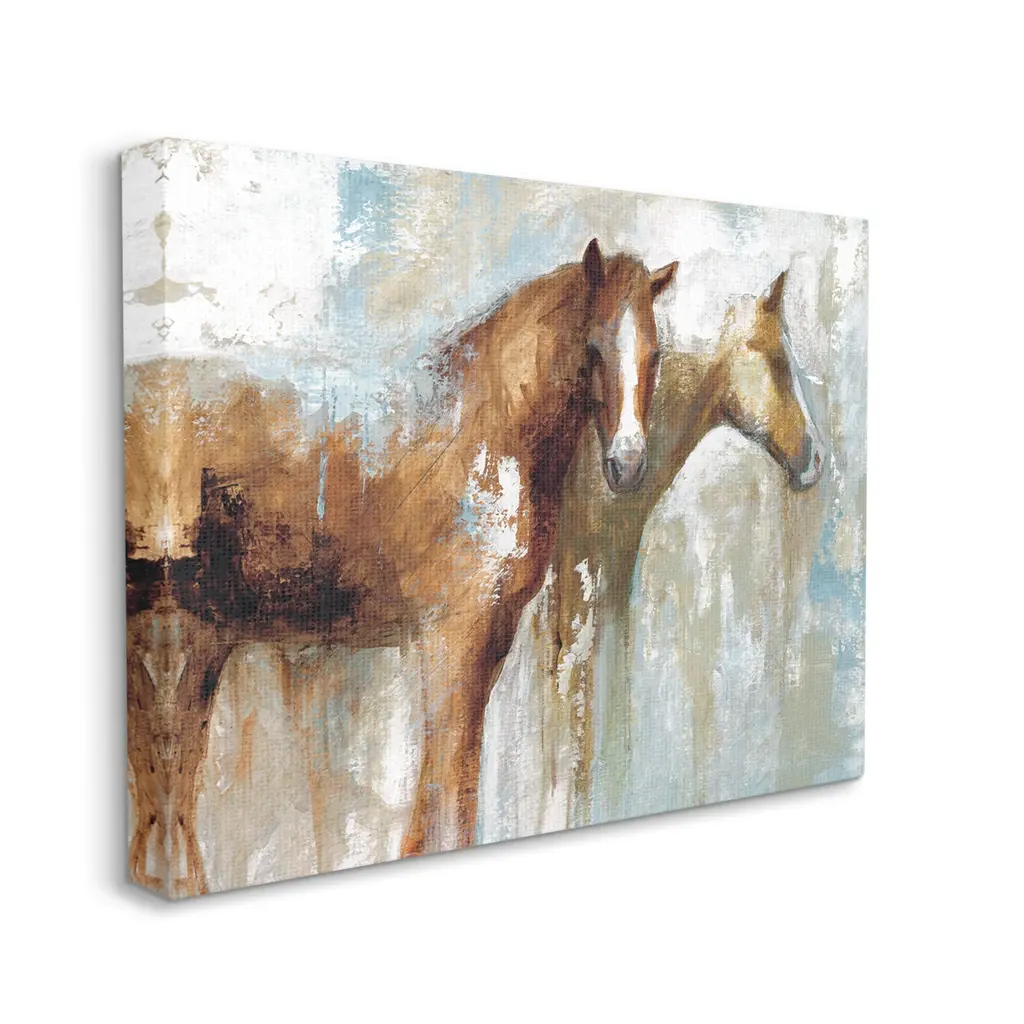 Stupell Layered Abstract Horses Foals Farm Animal Painting Canvas Wall Art - Brown - 20 X 16