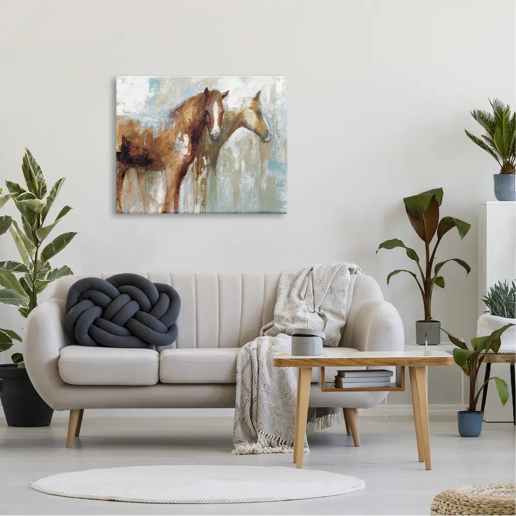 Proudly made in the USA, Our stretched canvas is created with the highest standards. We use only the highest quality inks and canvas on our in house Mimaki printers, and then hand cut and stretch each piece over a 1.5 inch thick wooden frame for hanging. The art comes ready to hang with no installation required.Features: Wall Art is Ready to Hang - No Installation or Hardware Needed. For Easy Set Up Lean or Layer Artwork on Shelf or Against Wall.Our stretched canvas is created with the highest standards. We use only the highest quality inks and canvas on our in house Mimaki printers, and then hand cut and stretch each piece over a 1.5 inch thick wooden frame for hanging. Made In USA.Artwork Relates To: Horse; Mammal; Animal; Painting; Colt Horse; Foal; Design by White Ladder