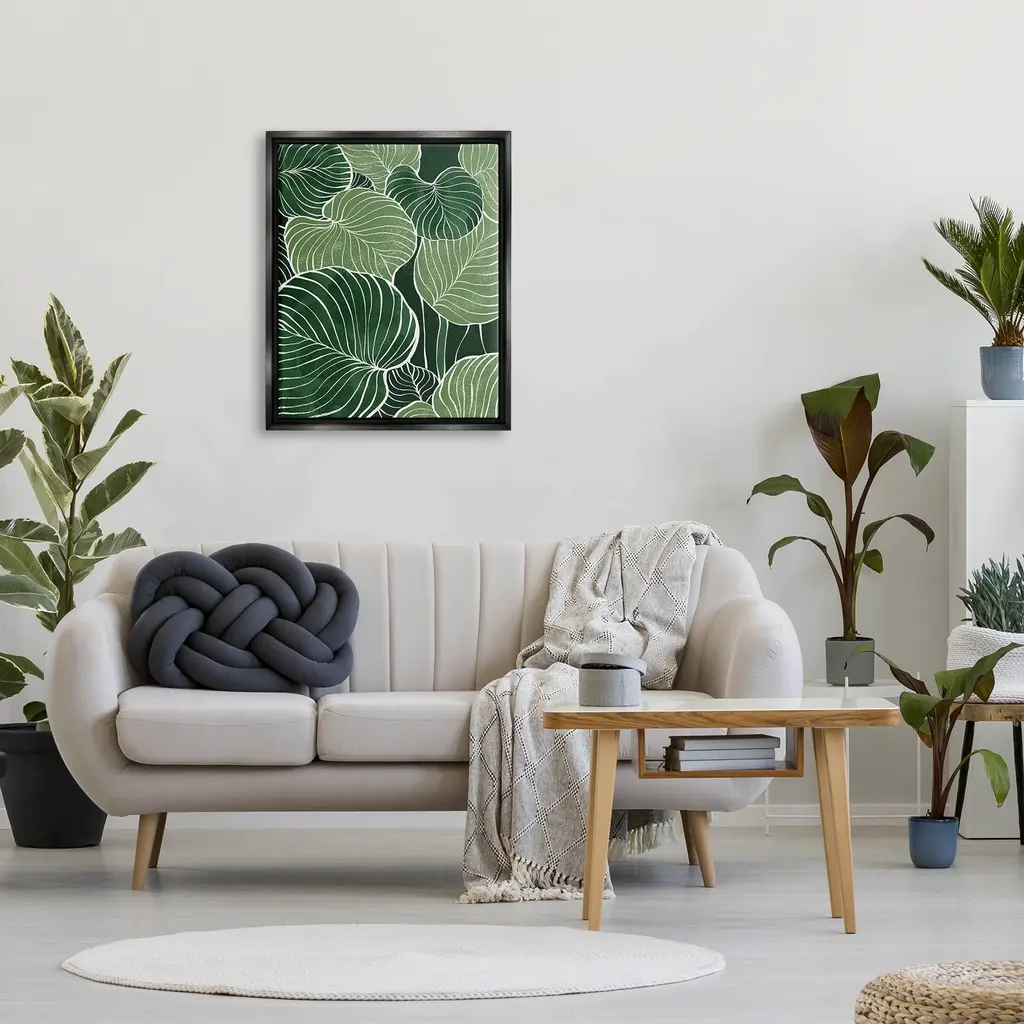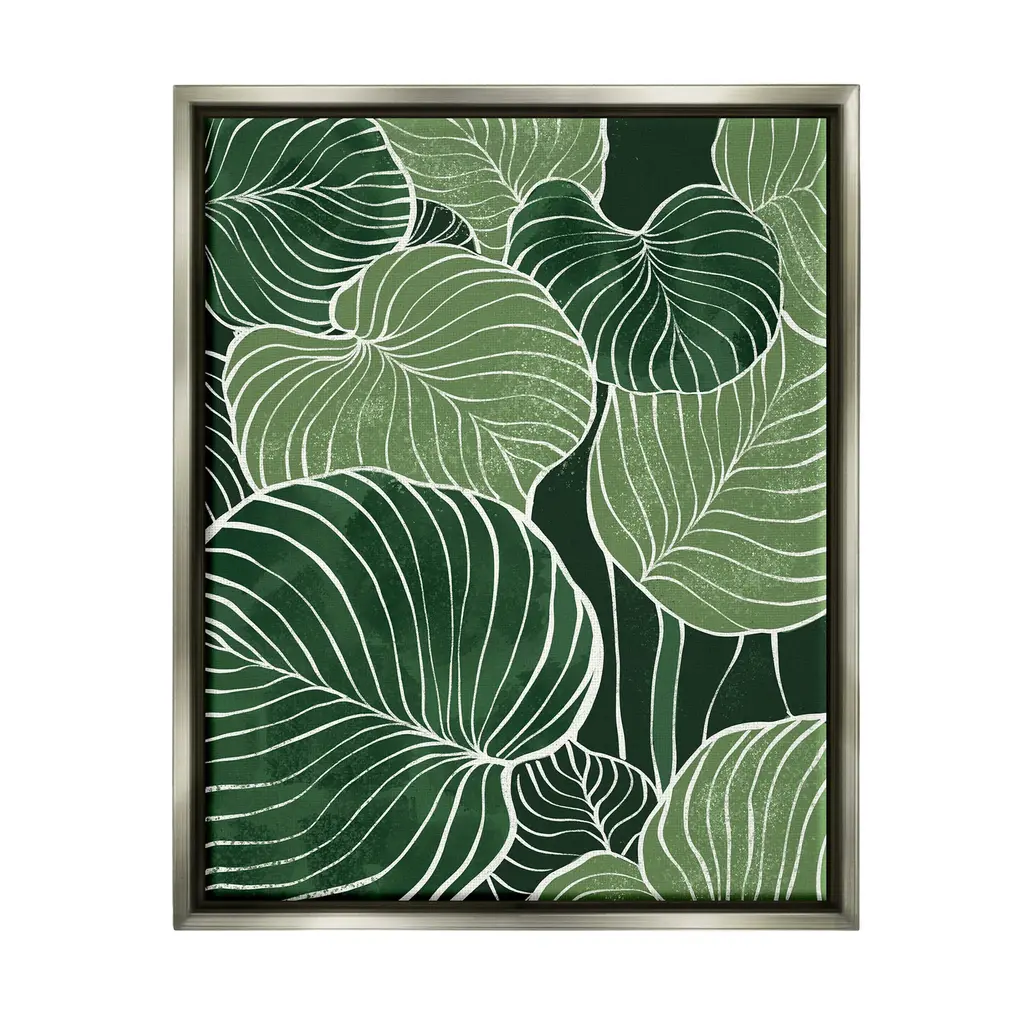 Elevate your home or office to the next level with Stupell Framed Floating Canvas Wall Art. Our premium hand stretched canvas is mounted securly into a sturdy lightweight frame. The museum style gap between wrapped canvas and box frame gives the illusion of floating artwork. Features: Dimensions: 17 x 1.7 x 21 Frame, 16 x 1.5 x 20 Canvas ArtFloating Frame Sizes Include Standard: 17 x 1.7 x 21 Oversized: 25 x 1.7 x 31Wall Art is Ready to Hang - No Installation or Hardware Needed. For Easy Set Up Lean or Layer Artwork on Shelf or Against Wall.Our elevated 1.7" Thick Floating Frame is the perfect complement to our canvas style Wall Art. We use only the highest quality inks in house with industry leading printing solutions. Canvas is hand stretched over a durable wood foundation and then mounted securly into a Modern Box Frame. Made in the USA.Artwork Relates To: Leaf, Plant, Pattern, GreenDesign by Ziwei Li