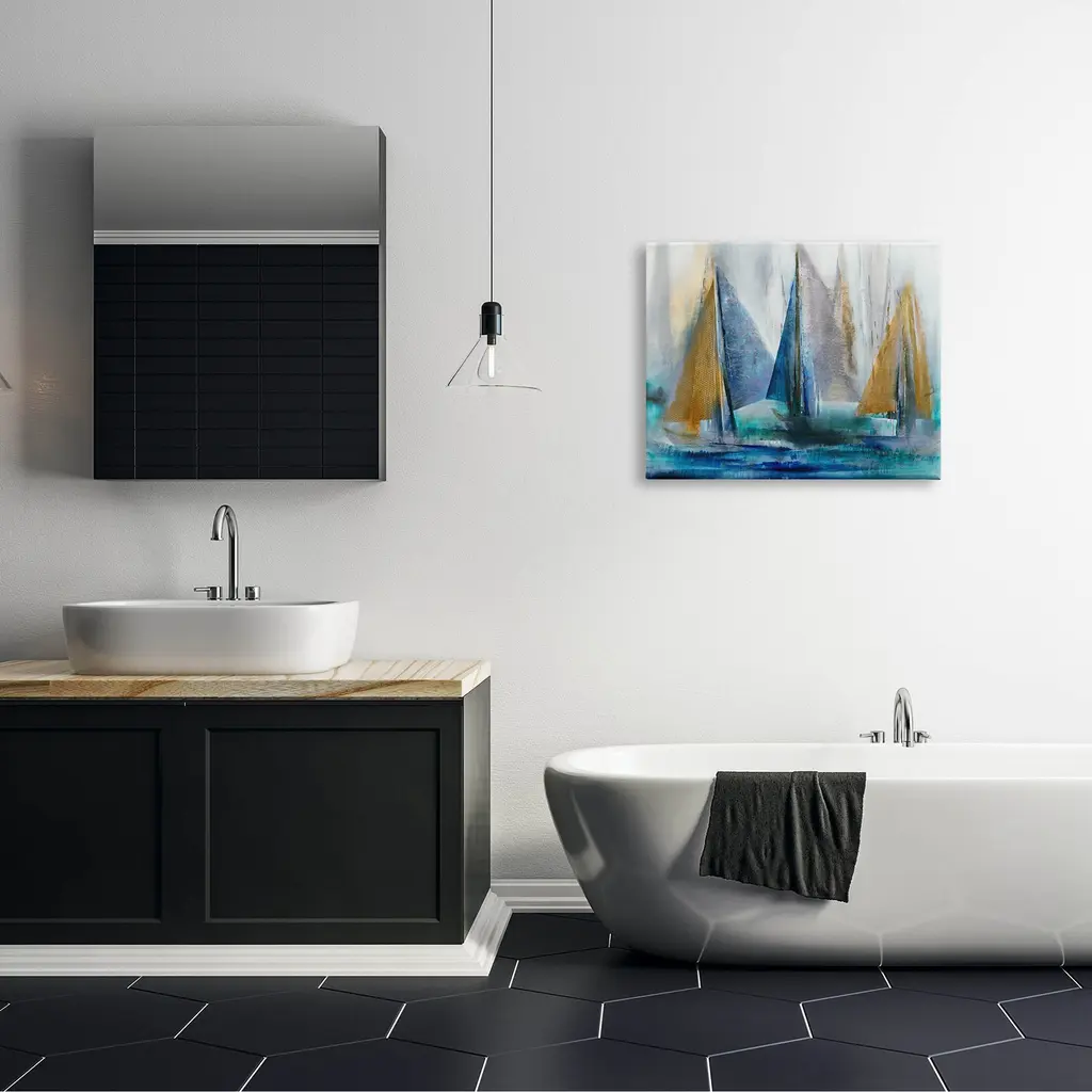 Proudly made in the USA, Our stretched canvas is created with the highest standards. We use only the highest quality inks and canvas on our in house Mimaki printers, and then hand cut and stretch each piece over a 1.5 inch thick wooden frame for hanging. The art comes ready to hang with no installation required. Not to mention, at this size, it is sure to be the focal point of any room!Features:Dimensions: 20 x 1.5 x 16 InchesStretched Canvas Sizes IncludeStandard: 20 x 1.5 x 16Large: 30 x 1.5 x 20X-Large: 40 x 1.5 x 30Oversized: 48 x 1.5 x 36Wall Art is Ready to Hang - No Installation or Hardware Needed. For Easy Set Up Lean or Layer Artwork on Shelf or Against Wall.Our stretched canvas is created with the highest standards. We use only the highest quality inks and canvas on our in house Mimaki printers, and then hand cut and stretch each piece over a 1.5 inch thick wooden frame for hanging. Made In USA.Artwork Relates To: Sailboat; Vehicle; Boat; Transportation; Modern; Water, Ocean, SeaDesign by K. Nari