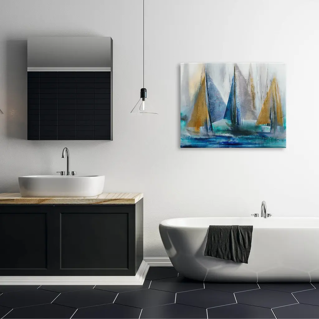 Proudly made in the USA, Our stretched canvas is created with the highest standards. We use only the highest quality inks and canvas on our in house Mimaki printers, and then hand cut and stretch each piece over a 1.5 inch thick wooden frame for hanging. The art comes ready to hang with no installation required. Not to mention, at this size, it is sure to be the focal point of any room!Features:Dimensions: 20 x 1.5 x 16 InchesStretched Canvas Sizes IncludeStandard: 20 x 1.5 x 16Large: 30 x 1.5 x 20X-Large: 40 x 1.5 x 30Oversized: 48 x 1.5 x 36Wall Art is Ready to Hang - No Installation or Hardware Needed. For Easy Set Up Lean or Layer Artwork on Shelf or Against Wall.Our stretched canvas is created with the highest standards. We use only the highest quality inks and canvas on our in house Mimaki printers, and then hand cut and stretch each piece over a 1.5 inch thick wooden frame for hanging. Made In USA.Artwork Relates To: Sailboat; Vehicle; Boat; Transportation; Modern; Water, Ocean, SeaDesign by K. Nari