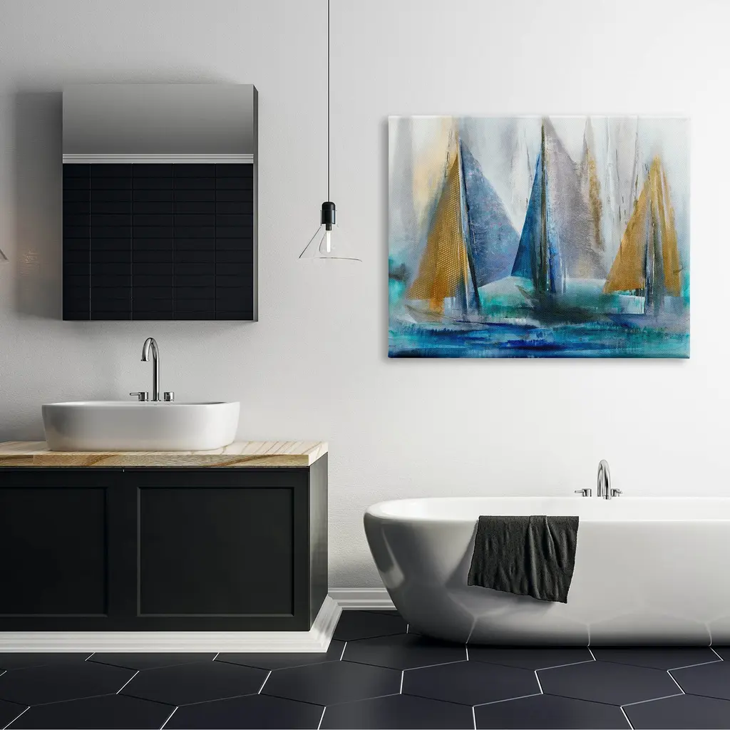 Proudly made in the USA, Our stretched canvas is created with the highest standards. We use only the highest quality inks and canvas on our in house Mimaki printers, and then hand cut and stretch each piece over a 1.5 inch thick wooden frame for hanging. The art comes ready to hang with no installation required. Not to mention, at this size, it is sure to be the focal point of any room!Features:Dimensions: 20 x 1.5 x 16 InchesStretched Canvas Sizes IncludeStandard: 20 x 1.5 x 16Large: 30 x 1.5 x 20X-Large: 40 x 1.5 x 30Oversized: 48 x 1.5 x 36Wall Art is Ready to Hang - No Installation or Hardware Needed. For Easy Set Up Lean or Layer Artwork on Shelf or Against Wall.Our stretched canvas is created with the highest standards. We use only the highest quality inks and canvas on our in house Mimaki printers, and then hand cut and stretch each piece over a 1.5 inch thick wooden frame for hanging. Made In USA.Artwork Relates To: Sailboat; Vehicle; Boat; Transportation; Modern; Water, Ocean, SeaDesign by K. Nari