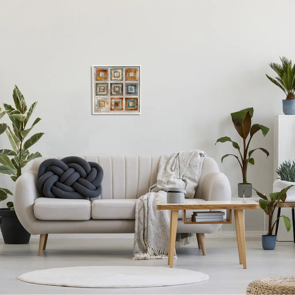 Stupell Layered Square Collage Industrial Rust Tones Abstract Shapes Framed Wall Art - Orange - 17 X 17 - White