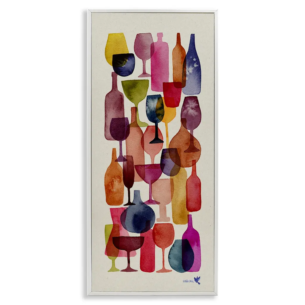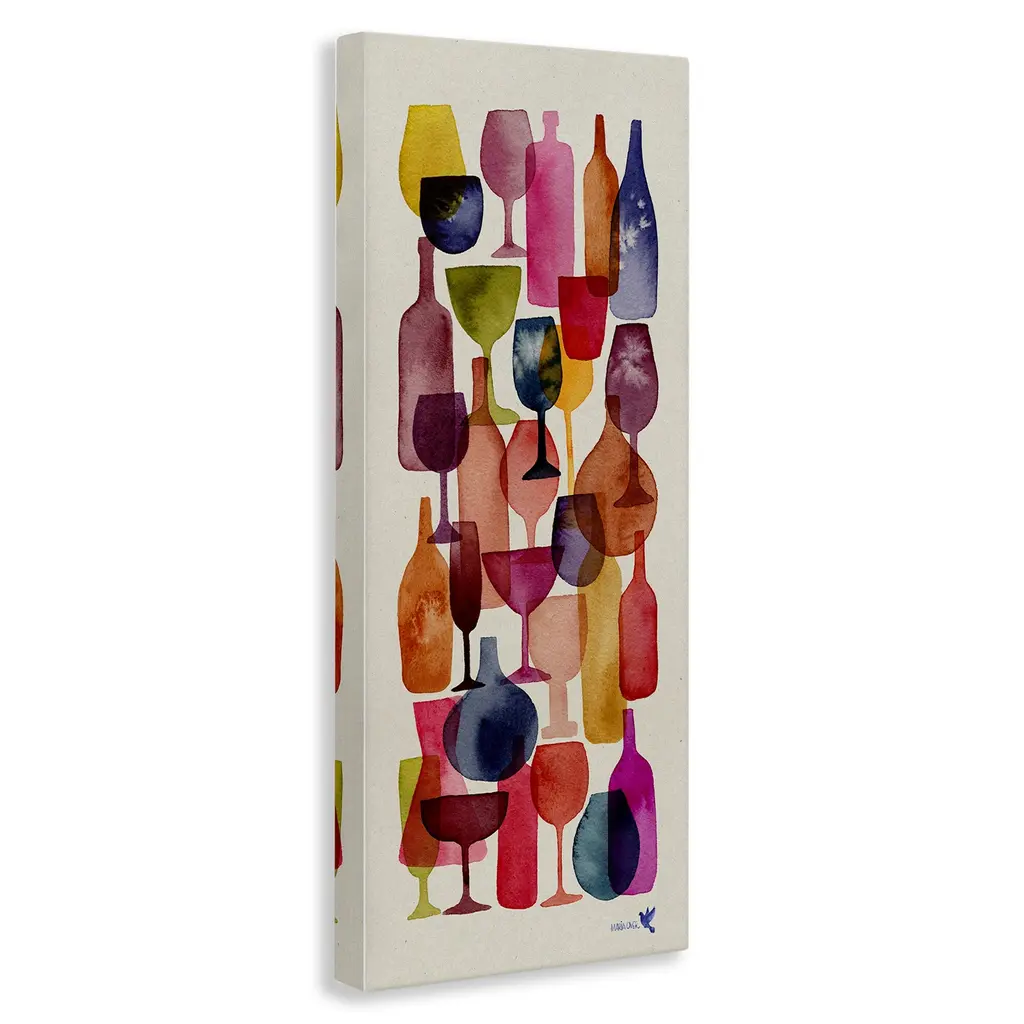 We create our stretched canvas to the highest standards. Using only the highest quality inks and canvas on Mimaki printers, we hand-cut and stretch each piece over a 1.5-inch thick wooden frame for hanging. As a result, the art comes ready to hang on the sturdy ledge with no installation required. Stupell Wall Art is made in the USA.Features: Dimensions: 10 x 1.5 x 24 InchesStretched Canvas Sizes Include Standard: 10 x 1.5 x 24 Large: 13 x 1.5 x 30 X-Large: 17 x 1.5 x 40 Oversized: 20 x 1.5 x 48Wall Art is Ready to Hang - No Installation or Hardware Needed. For Easy Set Up Lean or Layer Artwork on Shelf or Against Wall.Our stretched canvas is created with the highest standards. We use only the highest quality inks and canvas on our in house Mimaki printers, and then hand cut and stretch each piece over a 1.5 inch thick wooden frame for hanging. Made In USA.Artwork Relates To: Modern, Painting, Wine Glass, Champagne Glass, KitchenDesign by Maria Over
