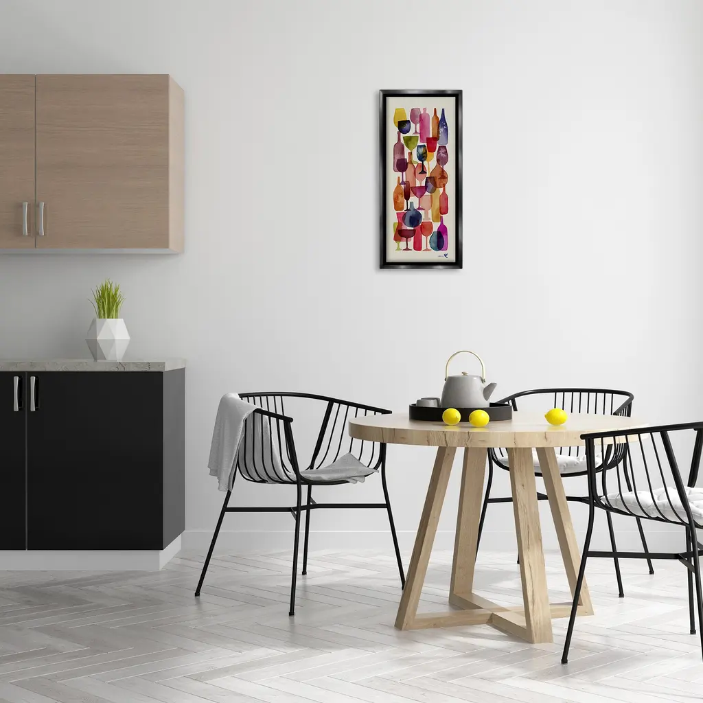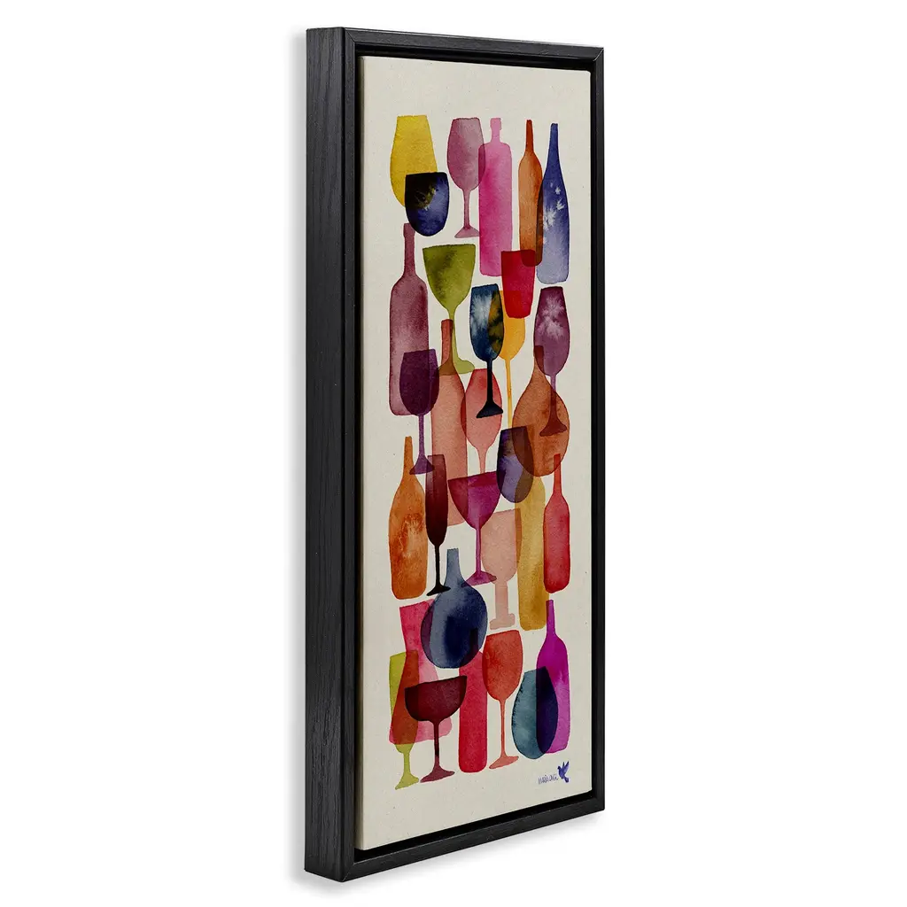 Elevate your home or office to the next level with Stupell Framed Floating Canvas Wall Art. Our premium hand-stretched canvas is mounted securely into a sturdy lightweight frame. The museum-style gap between the wrapped canvas and the box frame gives the illusion of floating artwork. Stupell Wall Art is made in the USA.Features: Dimensions: 11 x 1.7 x 25 Frame, 10 x 1.5 x 24 Canvas ArtFloating Frame Canvas Products are available in sizes 11"x25" and 14"x31". All Floating Frame Canvas Products have a 1.7" Depth.Wall Art is Ready to Hang with Hardware Free Hanging. No Installation required. For Easy Set Up Lean or Layer Artwork on Shelf or Against Wall. Artwork is Permently Fixed into the Frame.Our elevated 1.7" Thick Floating Frame is the perfect complement to our canvas style Wall Art. We use only the highest quality inks in house with industry leading printing solutions. Canvas is hand stretched over a durable wood foundation and then mounted securly into a Modern Box Frame. Made in the USA.Artwork Relates To: Modern, Painting, Wine Glass, Champagne Glass, Kitchen, Abstract, Modern, PatternDesign by Maria Over