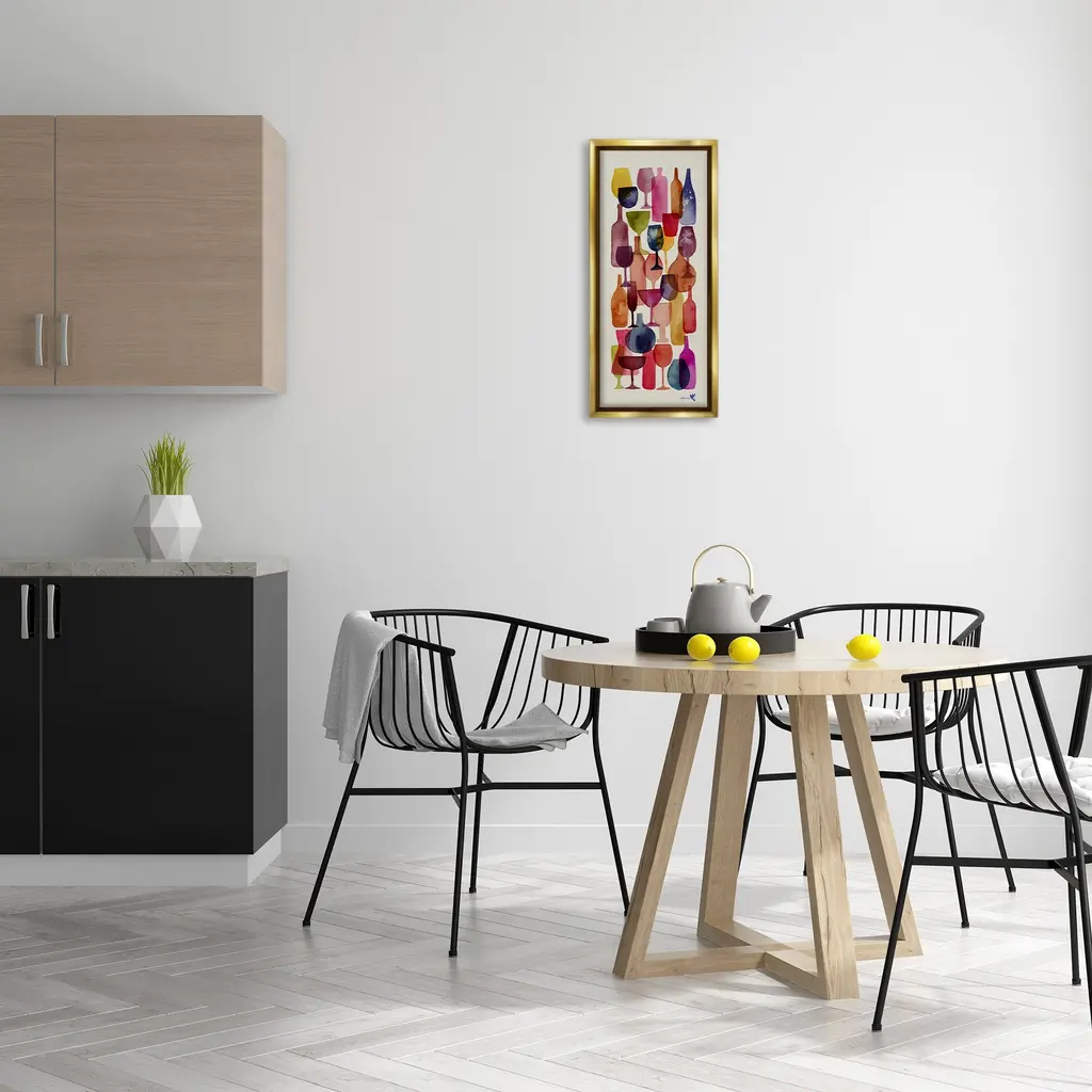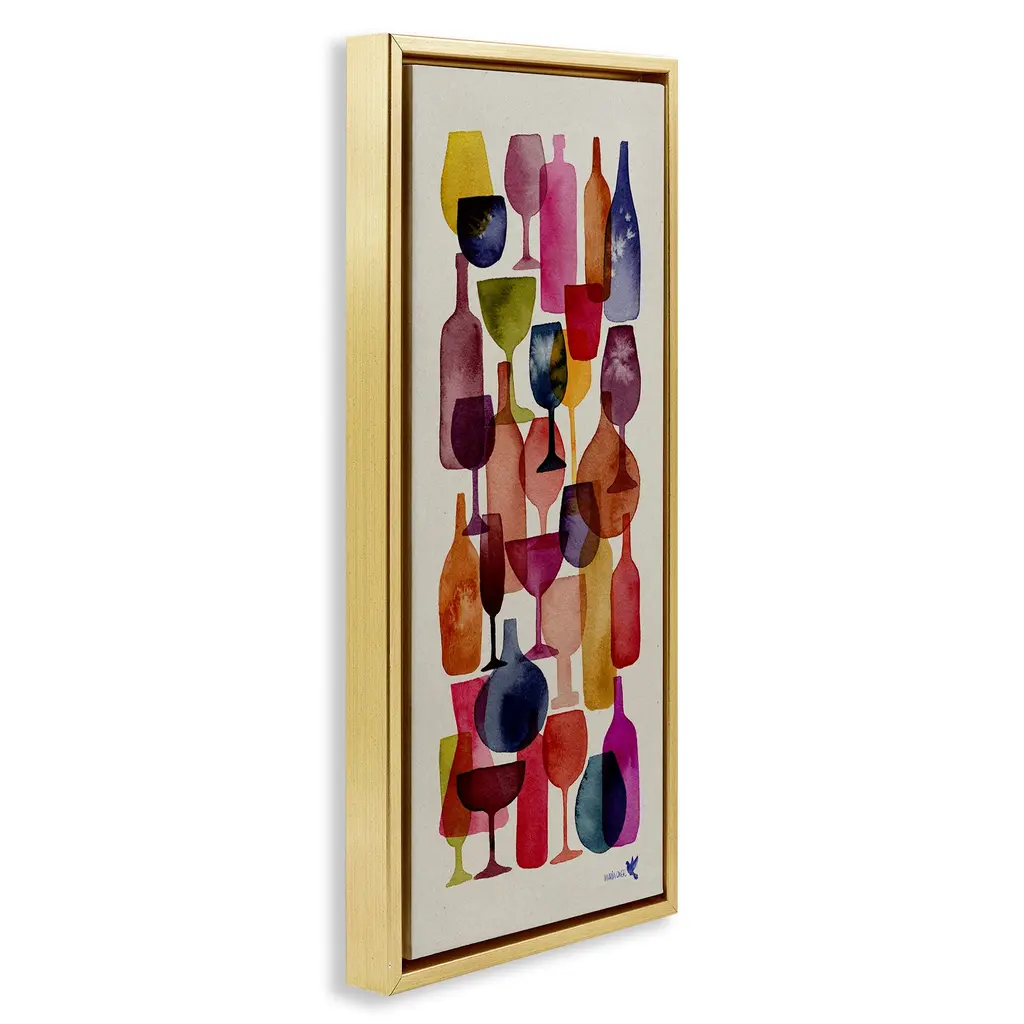 Elevate your home or office to the next level with Stupell Framed Floating Canvas Wall Art. Our premium hand-stretched canvas is mounted securely into a sturdy lightweight frame. The museum-style gap between the wrapped canvas and the box frame gives the illusion of floating artwork. Stupell Wall Art is made in the USA.Features: Dimensions: 11 x 1.7 x 25 Frame, 10 x 1.5 x 24 Canvas ArtFloating Frame Canvas Products are available in sizes 11"x25" and 14"x31". All Floating Frame Canvas Products have a 1.7" Depth.Wall Art is Ready to Hang with Hardware Free Hanging. No Installation required. For Easy Set Up Lean or Layer Artwork on Shelf or Against Wall. Artwork is Permently Fixed into the Frame.Our elevated 1.7" Thick Floating Frame is the perfect complement to our canvas style Wall Art. We use only the highest quality inks in house with industry leading printing solutions. Canvas is hand stretched over a durable wood foundation and then mounted securly into a Modern Box Frame. Made in the USA.Artwork Relates To: Modern, Painting, Wine Glass, Champagne Glass, Kitchen, Abstract, Modern, PatternDesign by Maria Over