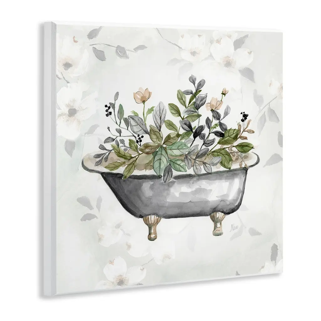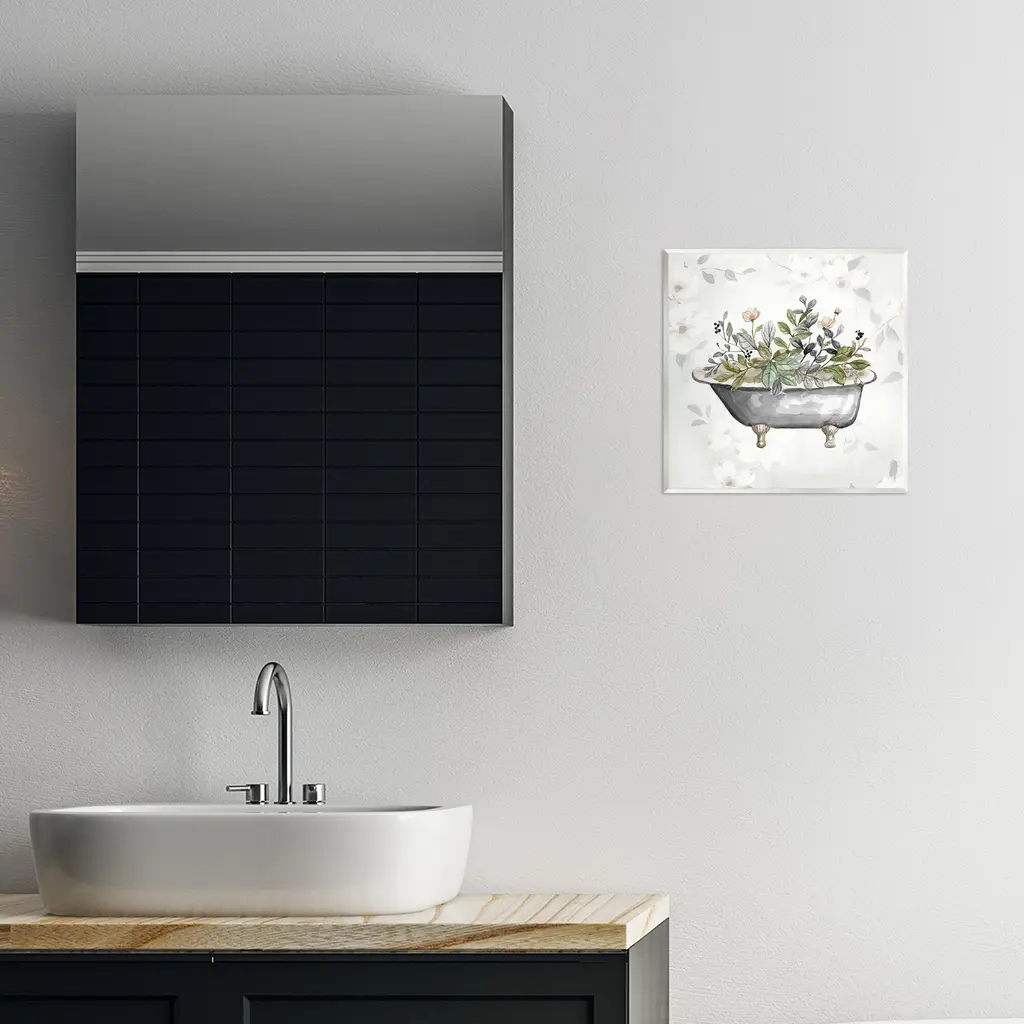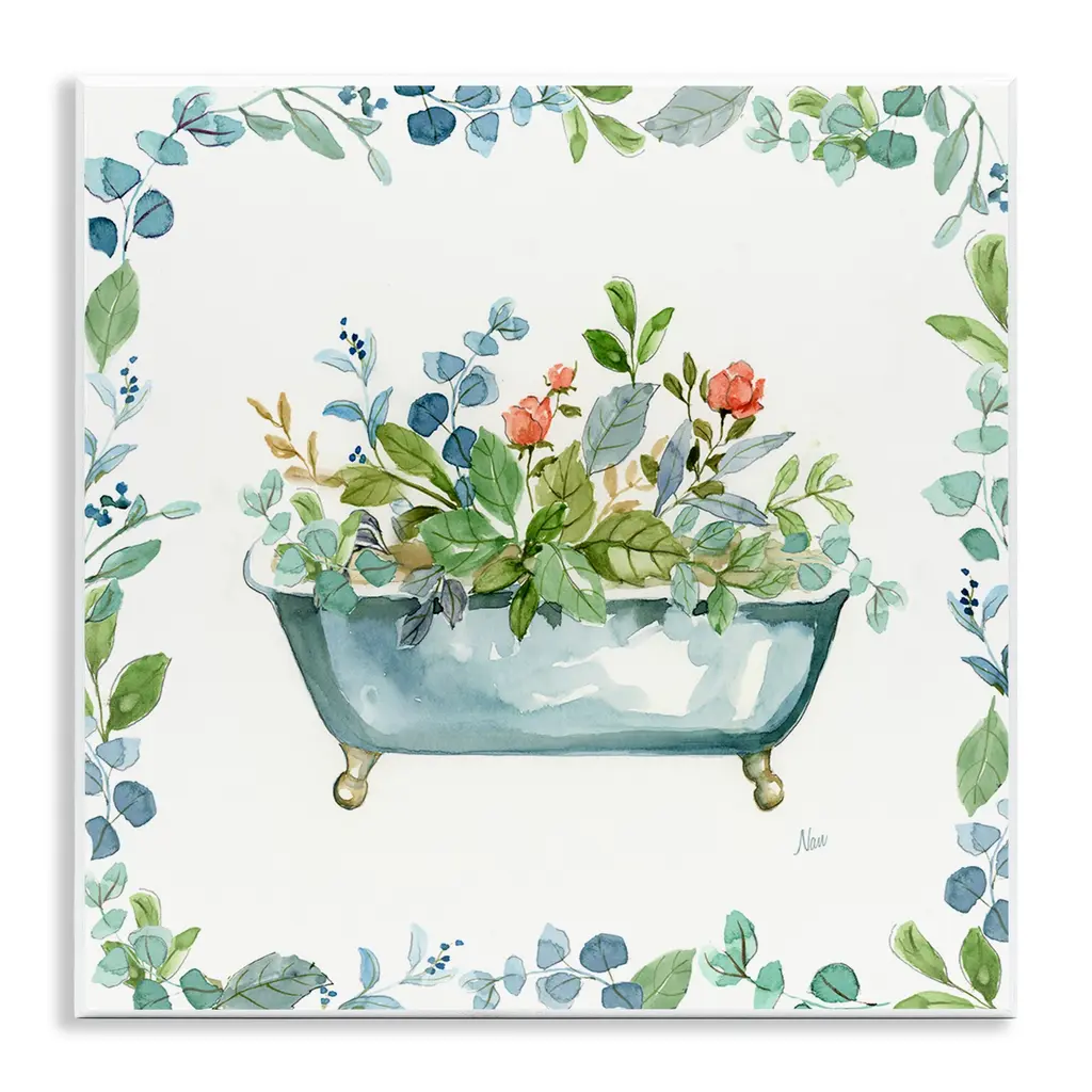 Our wall plaques start as high-quality lithograph prints mounted on durable 0.5-inch thick MDF wood. Each piece is hand finished and comes with a fresh layer of white foil on the sides to give it a crisp, clean look. Plaques arrive ready to hang without installation and come with removable plastic corners to keep them from damage in transit. Stupell Wall Art is made in the USA.Features: Dimensions: 12 x 0.5 x 12 InchesWall Art is Ready to Hang with Hardware Free Hanging. No installation required. For Easy Set Up Lean or Layer Artwork on Shelf or Against Wall.All of our wall plaques start off as high quality lithograph prints that are then mounted on durable 0.5 inch thick MDF wood. Each piece is hand finished and comes with a fresh layer of foil on the sides to give it a crisp clean look. Made In USA.Artwork Relates To: Bathroom, Bathtub, Tub, Hygiene, Flower, Floral, BotanicalDesign by Nan