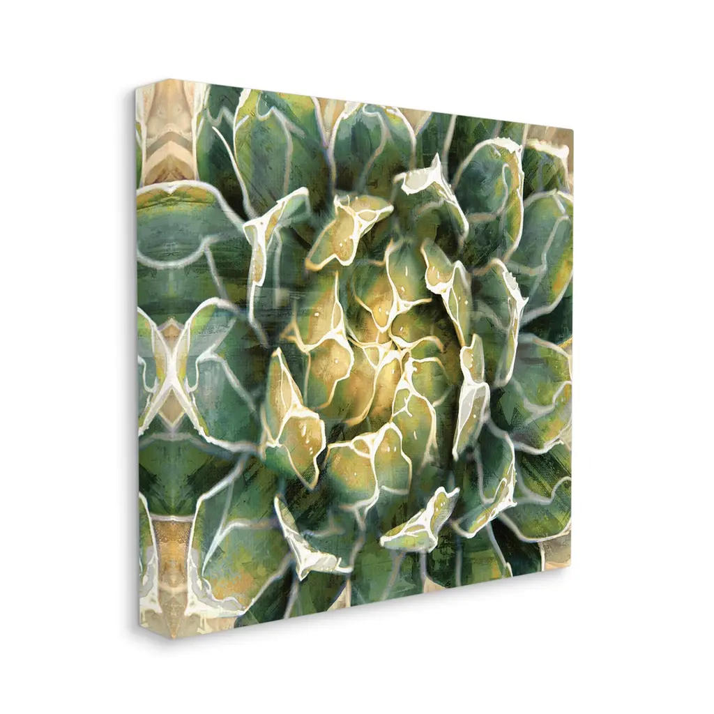 We create our stretched canvas to the highest standards. Using only the highest quality inks and canvas on Mimaki printers, we hand-cut and stretch each piece over a 1.5-inch thick wooden frame for hanging. As a result, the art comes ready to hang on the sturdy ledge with no installation required. Stupell Wall Art is made in the USA.Features: Dimensions: 17 x 1.5 x 17 InchesStretched Canvas Sizes Include Standard: 17 x 1.5 x 17 Large: 24 x 1.5 x 24 X-Large: 30 x 1.5 x 30 Oversized: 36 x 1.5 x 36Wall Art is Ready to Hang - No Installation or Hardware Needed. For Easy Set Up Lean or Layer Artwork on Shelf or Against Wall.Our stretched canvas is created with the highest standards. We use only the highest quality inks and canvas on our in house Mimaki printers, and then hand cut and stretch each piece over a 1.5 inch thick wooden frame for hanging. Made In USA.Artwork Relates To: Succulent, Plant, Botanical, Green, Floral, FlowerDesign by Lindsay Benson