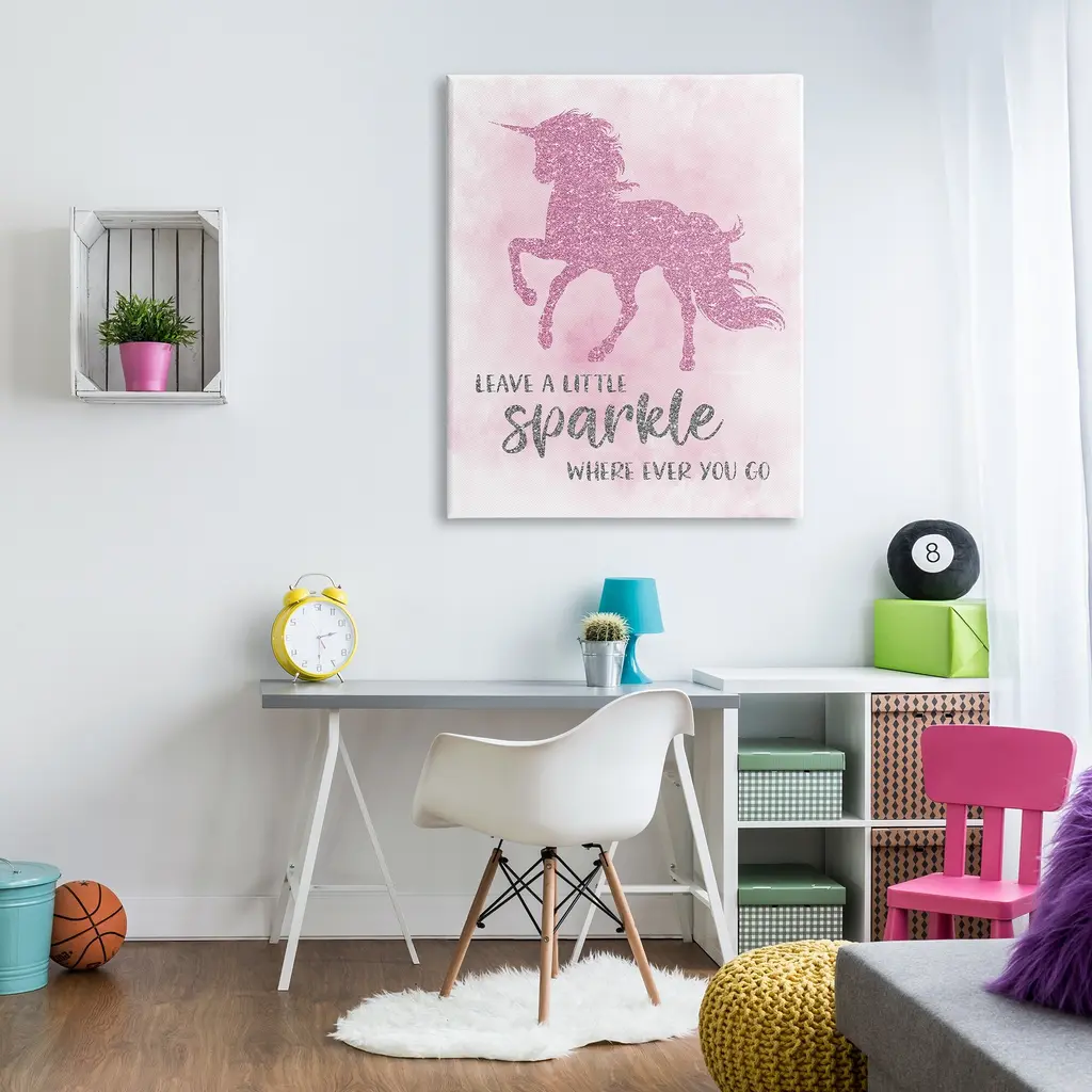 Stupell Leave A Little Sparkle Phrase Pink Shimmer Unicorn Canvas Wall Art - 24 X 30