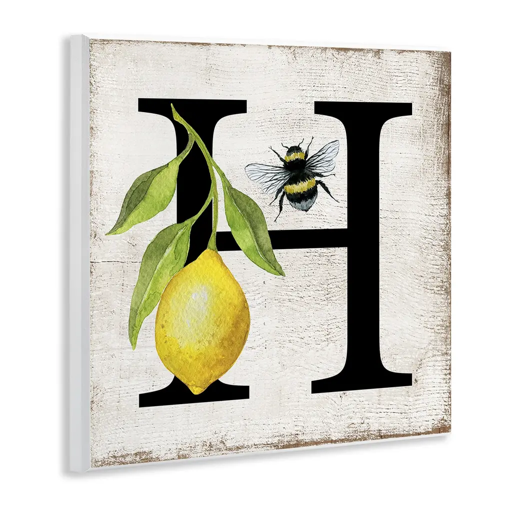 Stupell Lemon & Bee H Letter Wall Plaque Art Design By Creatif Belle - 12 X 12