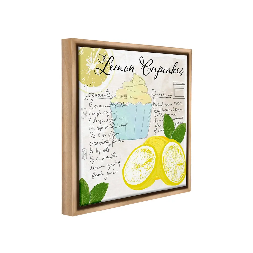 Elevate your home or office to the next level with Stupell Framed Floating Canvas Wall Art. Our premium hand-stretched canvas is mounted securely into a sturdy lightweight frame. The museum-style gap between the wrapped canvas and the box frame gives the illusion of floating artwork. Stupell Wall Art is made in the USA.Features: Dimensions: 18 x 1.7 x 18 Frame, 17 x 1.5 x 17 Canvas ArtFloating Frame Canvas Products are available in sizes 18"x18" and 25"x25". All Floating Frame Canvas Products have a 1.7" Depth.Wall Art is Ready to Hang with Hardware Free Hanging. No Installation required. For Easy Set Up Lean or Layer Artwork on Shelf or Against Wall. Artwork is Permently Fixed into the Frame.Our elevated 1.7" Thick Floating Frame is the perfect complement to our canvas style Wall Art. We use only the highest quality inks in house with industry leading printing solutions. Canvas is hand stretched over a durable wood foundation and then mounted securly into a Modern Box Frame. Made in the USA.Artwork Relates To: Citrus, Food, Fruit, Lemon, Plant, Produce, Country, Kitchen, Recipe, Dessert, Lemon CupcakesDesign by Daniela Santiago