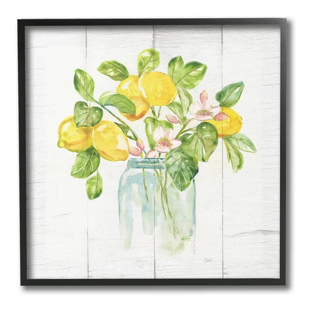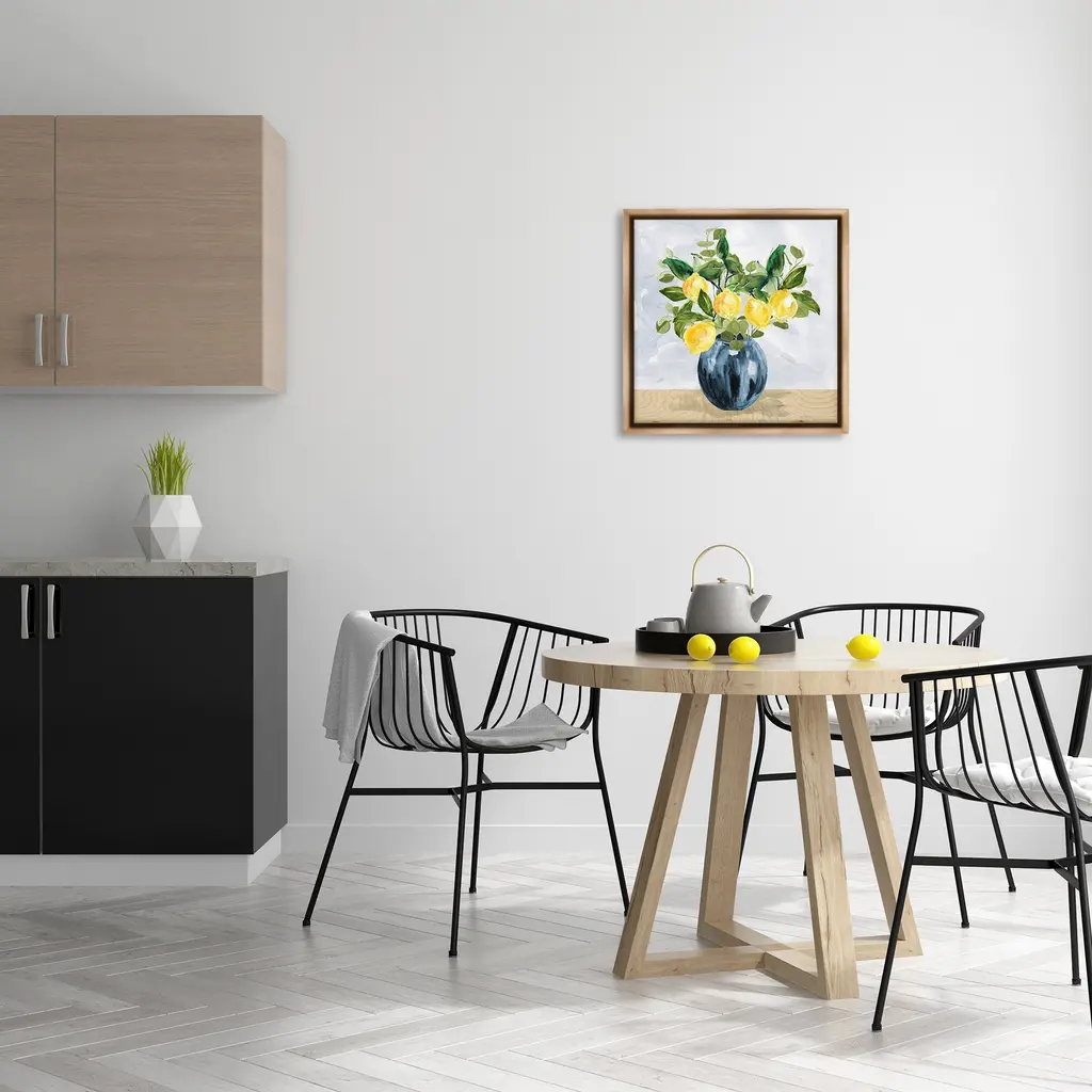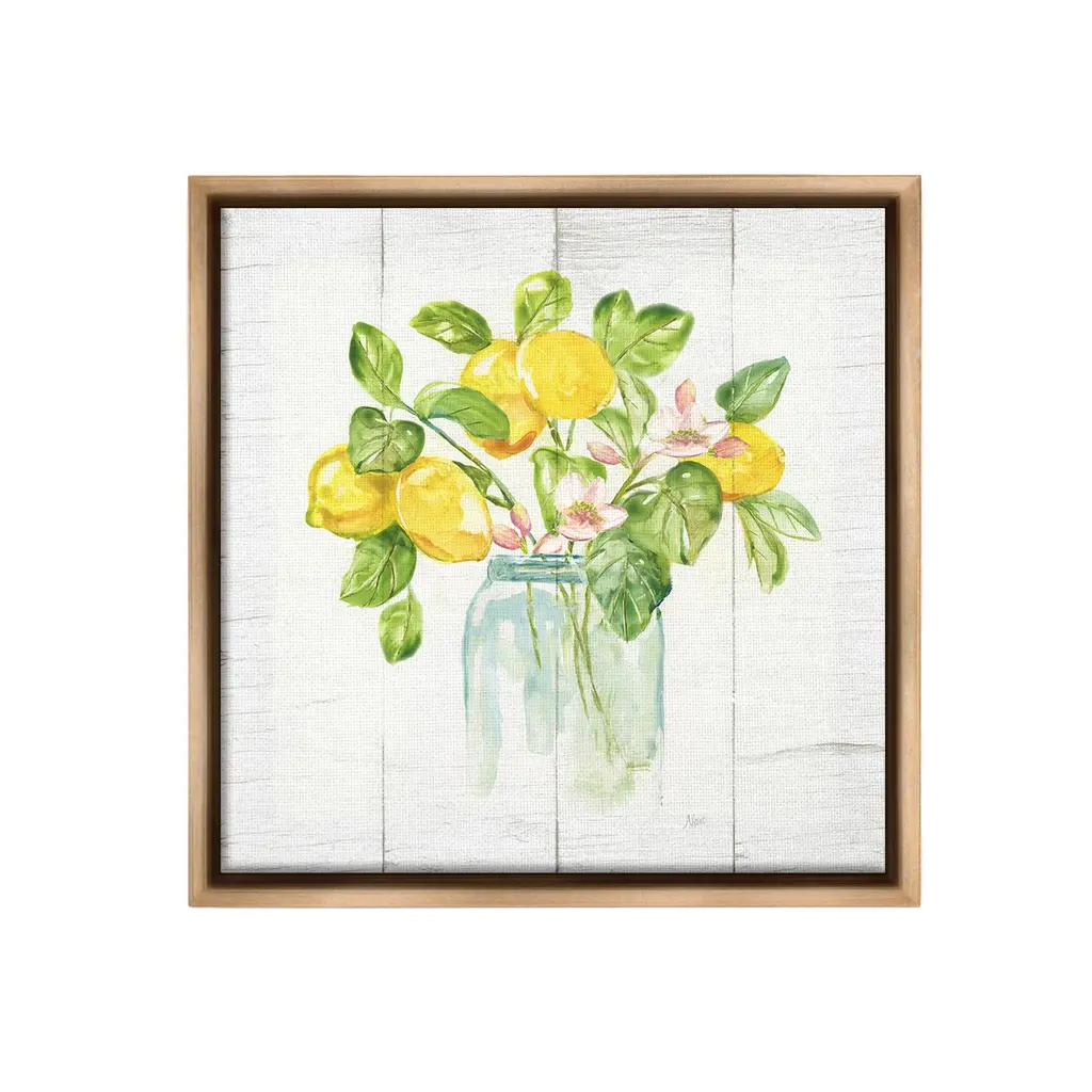 Elevate your home or office to the next level with Stupell Framed Floating Canvas Wall Art. Our premium hand-stretched canvas is mounted securely into a sturdy lightweight frame. The museum-style gap between the wrapped canvas and the box frame gives the illusion of floating artwork. Stupell Wall Art is made in the USA.Features: Dimensions: 18 x 1.7 x 18 Frame, 17 x 1.5 x 17 Canvas ArtFloating Frame Canvas Products are available in sizes 18"x18" and 25"x25". All Floating Frame Canvas Products have a 1.7" Depth.Wall Art is Ready to Hang with Hardware Free Hanging. No Installation required. For Easy Set Up Lean or Layer Artwork on Shelf or Against Wall. Artwork is Permently Fixed into the Frame.Our elevated 1.7" Thick Floating Frame is the perfect complement to our canvas style Wall Art. We use only the highest quality inks in house with industry leading printing solutions. Canvas is hand stretched over a durable wood foundation and then mounted securly into a Modern Box Frame. Made in the USA.Artwork Relates To: Citrus, Food, Fruit, Lemon, Plant, Produce, Country, Kitchen, BouquetDesign by Carol Robinson