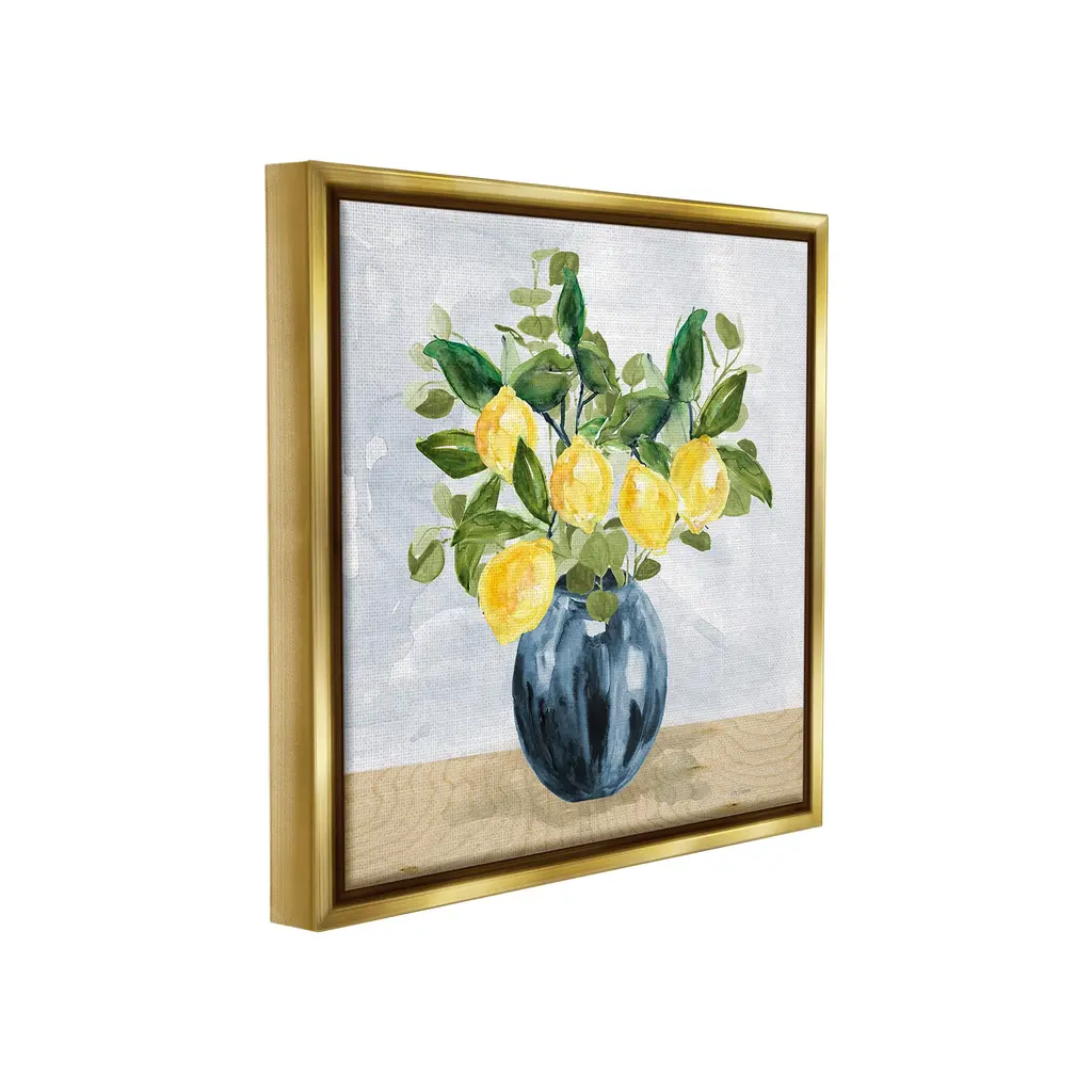 Elevate your home or office to the next level with Stupell Framed Floating Canvas Wall Art. Our premium hand-stretched canvas is mounted securely into a sturdy lightweight frame. The museum-style gap between the wrapped canvas and the box frame gives the illusion of floating artwork. Stupell Wall Art is made in the USA.Features: Dimensions: 18 x 1.7 x 18 Frame, 17 x 1.5 x 17 Canvas ArtFloating Frame Canvas Products are available in sizes 18"x18" and 25"x25". All Floating Frame Canvas Products have a 1.7" Depth.Wall Art is Ready to Hang with Hardware Free Hanging. No Installation required. For Easy Set Up Lean or Layer Artwork on Shelf or Against Wall. Artwork is Permently Fixed into the Frame.Our elevated 1.7" Thick Floating Frame is the perfect complement to our canvas style Wall Art. We use only the highest quality inks in house with industry leading printing solutions. Canvas is hand stretched over a durable wood foundation and then mounted securly into a Modern Box Frame. Made in the USA.Artwork Relates To: Citrus, Food, Fruit, Lemon, Plant, Produce, Country, Kitchen, BouquetDesign by Carol Robinson