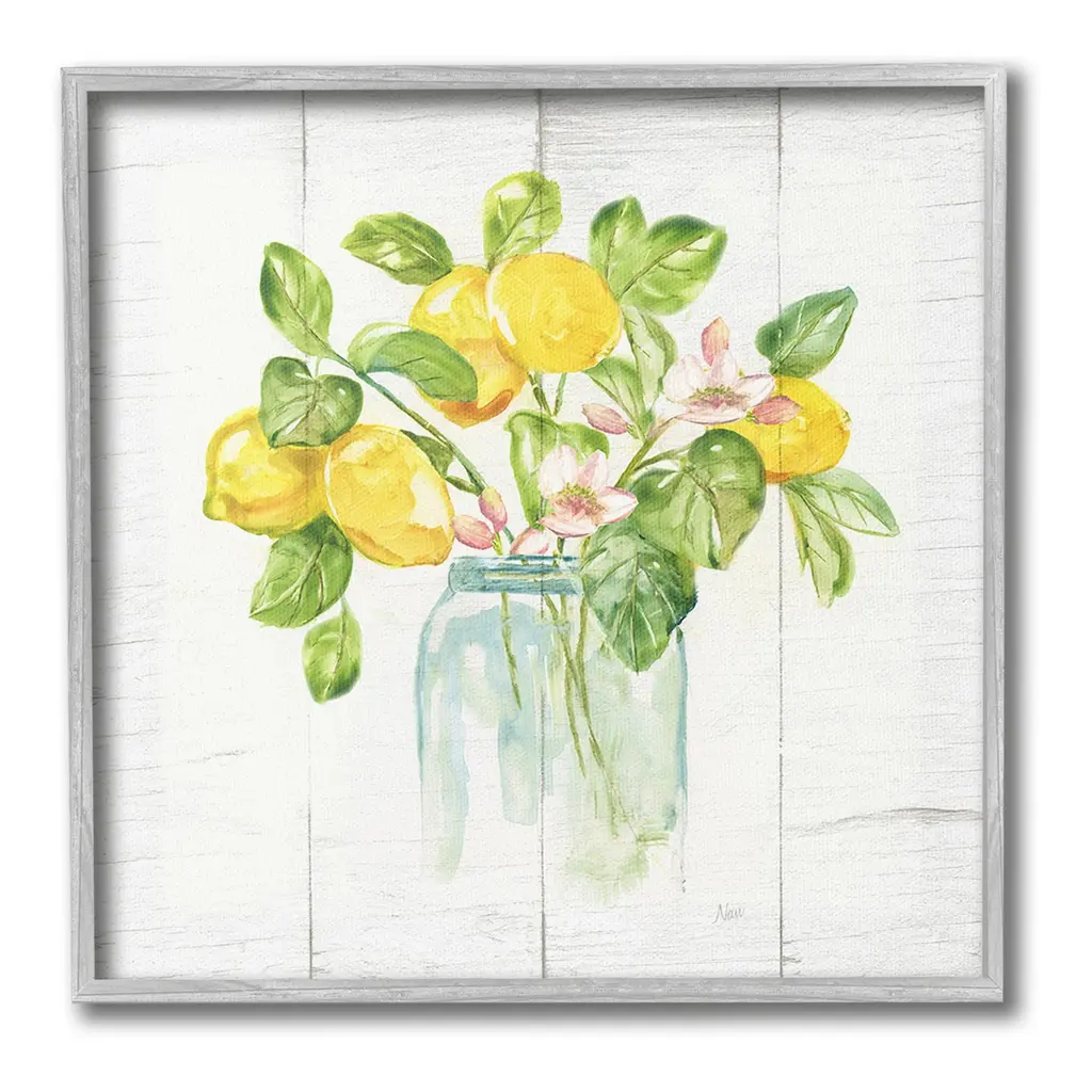 Add dimension to any room with our textured Framed Giclee Artwork. Our framed artwork is securely mounted into a 1.5-inch thick wood grain frame and ready to hang. Frames are available in three alluring styles: black, gray farmhouse and white. In addition, you should check out our oversized options if you want a statement piece. Stupell Wall Art is made in the USA.Features: Dimensions: 12 x 1.5 x 12 FramedFramed Giclee Product Sizes Include 12"x12", 17"x17", and 24"x24". Framed Giclee Products have a 1.5" Depth. Wall Art is Ready to Hang with Hardware Free Hanging. No installation required. For Easy Set Up Lean or Layer Artwork on Shelf or Against Wall.Our giclée prints are carefully mounted on a durable MDF backing, and then perfectly finished in a 1.5 inch thick woodgrain frame. Mounted frame colors include black, gray farmhouse and white. Made In USA.Artwork Relates To: Citrus, Food, Fruit, Lemon, Plant, Produce, Country, Kitchen, BouquetDesign by Carol Robinson