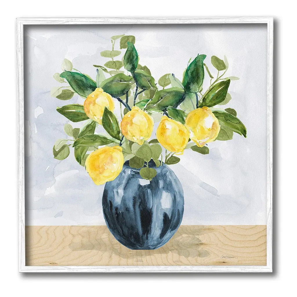 Add dimension to any room with our textured Framed Giclee Artwork. Our framed artwork is securely mounted into a 1.5-inch thick wood grain frame and ready to hang. Frames are available in three alluring styles: black, gray farmhouse and white. In addition, you should check out our oversized options if you want a statement piece. Stupell Wall Art is made in the USA.Features: Dimensions: 12 x 1.5 x 12 FramedFramed Giclee Product Sizes Include 12"x12", 17"x17", and 24"x24". Framed Giclee Products have a 1.5" Depth. Wall Art is Ready to Hang with Hardware Free Hanging. No installation required. For Easy Set Up Lean or Layer Artwork on Shelf or Against Wall.Our giclée prints are carefully mounted on a durable MDF backing, and then perfectly finished in a 1.5 inch thick woodgrain frame. Mounted frame colors include black, gray farmhouse and white. Made In USA.Artwork Relates To: Citrus, Food, Fruit, Lemon, Plant, Produce, Country, Kitchen, BouquetDesign by Carol Robinson