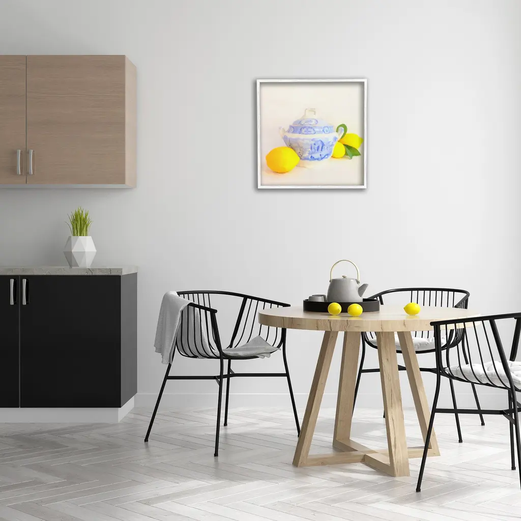 Add dimension to any room with our textured Framed Giclee Artwork. Our framed artwork is securely mounted into a 1.5-inch thick wood grain frame and ready to hang. Frames are available in three alluring styles: black, gray farmhouse and white. In addition, you should check out our oversized options if you want a statement piece. Stupell Wall Art is made in the USA.Features: Dimensions: 12 x 1.5 x 12 FramedFramed Giclee Product Sizes Include 12"x12", 17"x17", and 24"x24". Framed Giclee Products have a 1.5" Depth. Wall Art is Ready to Hang with Hardware Free Hanging. No installation required. For Easy Set Up Lean or Layer Artwork on Shelf or Against Wall.Our giclée prints are carefully mounted on a durable MDF backing, and then perfectly finished in a 1.5 inch thick woodgrain frame. Mounted frame colors include black, gray farmhouse and white. Made In USA.Artwork Relates To: Pottery, Citrus, Fruit, Lemon, Plant, Produce, Teapot, Porcelain, Vintage, Still LifeDesign by GraffiTee Studios