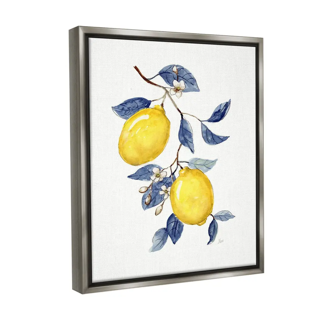 Elevate your home or office to the next level with Stupell Framed Floating Canvas Wall Art. Our premium hand-stretched canvas is mounted securely into a sturdy lightweight frame. The museum-style gap between the wrapped canvas and the box frame gives the illusion of floating artwork. Stupell Wall Art is made in the USA.Features: Dimensions: 17 x 1.7 x 21 Frame, 16 x 1.5 x 20 Canvas ArtFloating Frame Canvas Products are available in sizes 17"x21" and 25"x31". All Floating Frame Canvas Products have a 1.7" Depth.Wall Art is Ready to Hang with Hardware Free Hanging. No Installation required. For Easy Set Up Lean or Layer Artwork on Shelf or Against Wall. Artwork is Permently Fixed into the Frame.Our elevated 1.7" Thick Floating Frame is the perfect complement to our canvas style Wall Art. We use only the highest quality inks in house with industry leading printing solutions. Canvas is hand stretched over a durable wood foundation and then mounted securly into a Modern Box Frame. Made in the USA.Artwork Relates To: Citrus, Food, Fruit, Lemon, Plant, Produce, Country, Kitchen, MinimalDesign by Nan