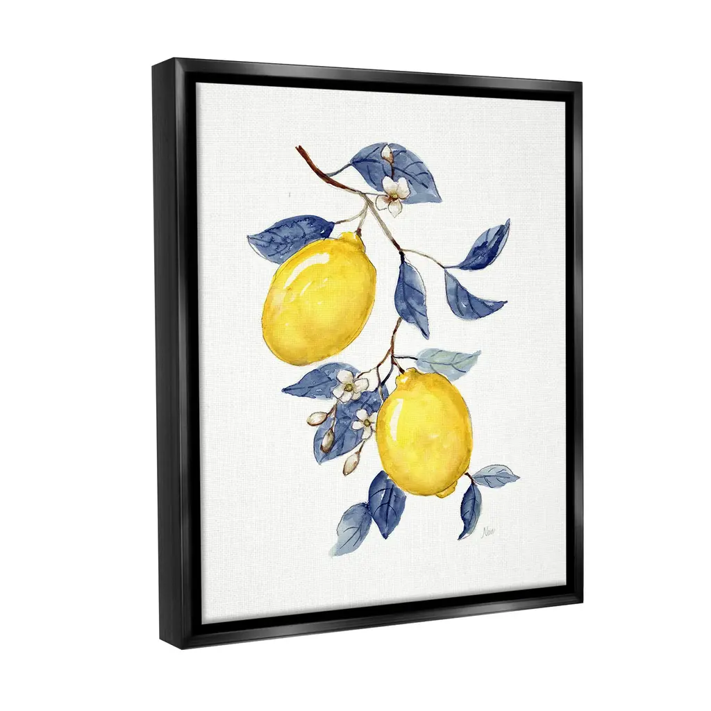 Elevate your home or office to the next level with Stupell Framed Floating Canvas Wall Art. Our premium hand-stretched canvas is mounted securely into a sturdy lightweight frame. The museum-style gap between the wrapped canvas and the box frame gives the illusion of floating artwork. Stupell Wall Art is made in the USA.Features: Dimensions: 17 x 1.7 x 21 Frame, 16 x 1.5 x 20 Canvas ArtFloating Frame Canvas Products are available in sizes 17"x21" and 25"x31". All Floating Frame Canvas Products have a 1.7" Depth.Wall Art is Ready to Hang with Hardware Free Hanging. No Installation required. For Easy Set Up Lean or Layer Artwork on Shelf or Against Wall. Artwork is Permently Fixed into the Frame.Our elevated 1.7" Thick Floating Frame is the perfect complement to our canvas style Wall Art. We use only the highest quality inks in house with industry leading printing solutions. Canvas is hand stretched over a durable wood foundation and then mounted securly into a Modern Box Frame. Made in the USA.Artwork Relates To: Citrus, Food, Fruit, Lemon, Plant, Produce, Country, Kitchen, MinimalDesign by Nan