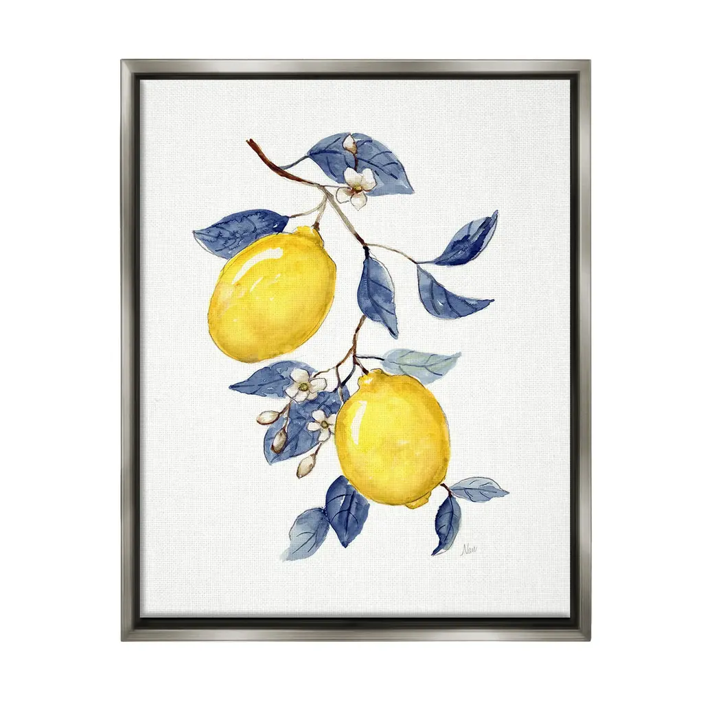 Stupell Lemons With Flower Buds Framed Giclee Art Design By Nan - 11 X 14 - Grey